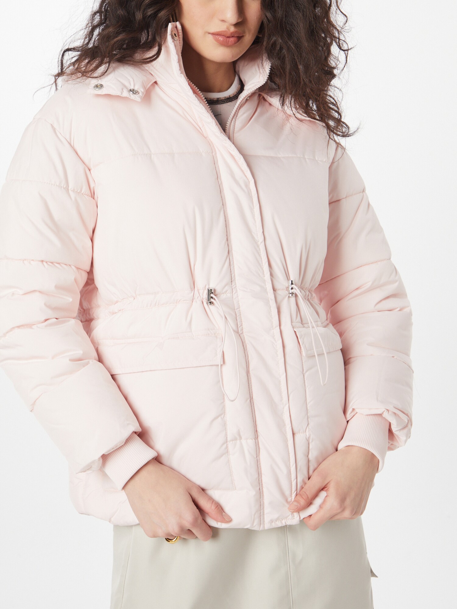 Urban Classics Geacă matlasată de iarnă roz, guler tunică cu glugă, fermoar ascuns, cordon talie, croi lejer