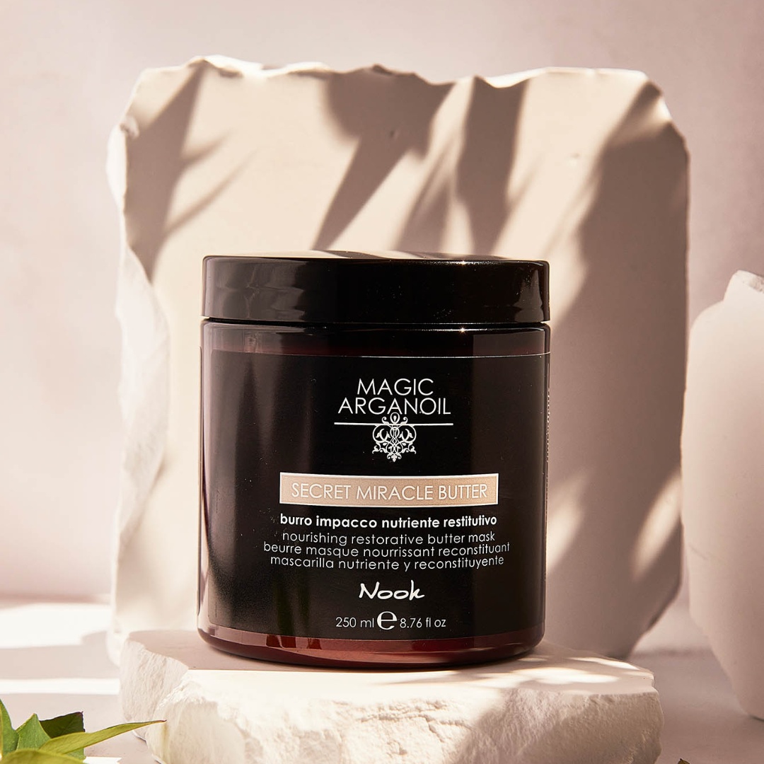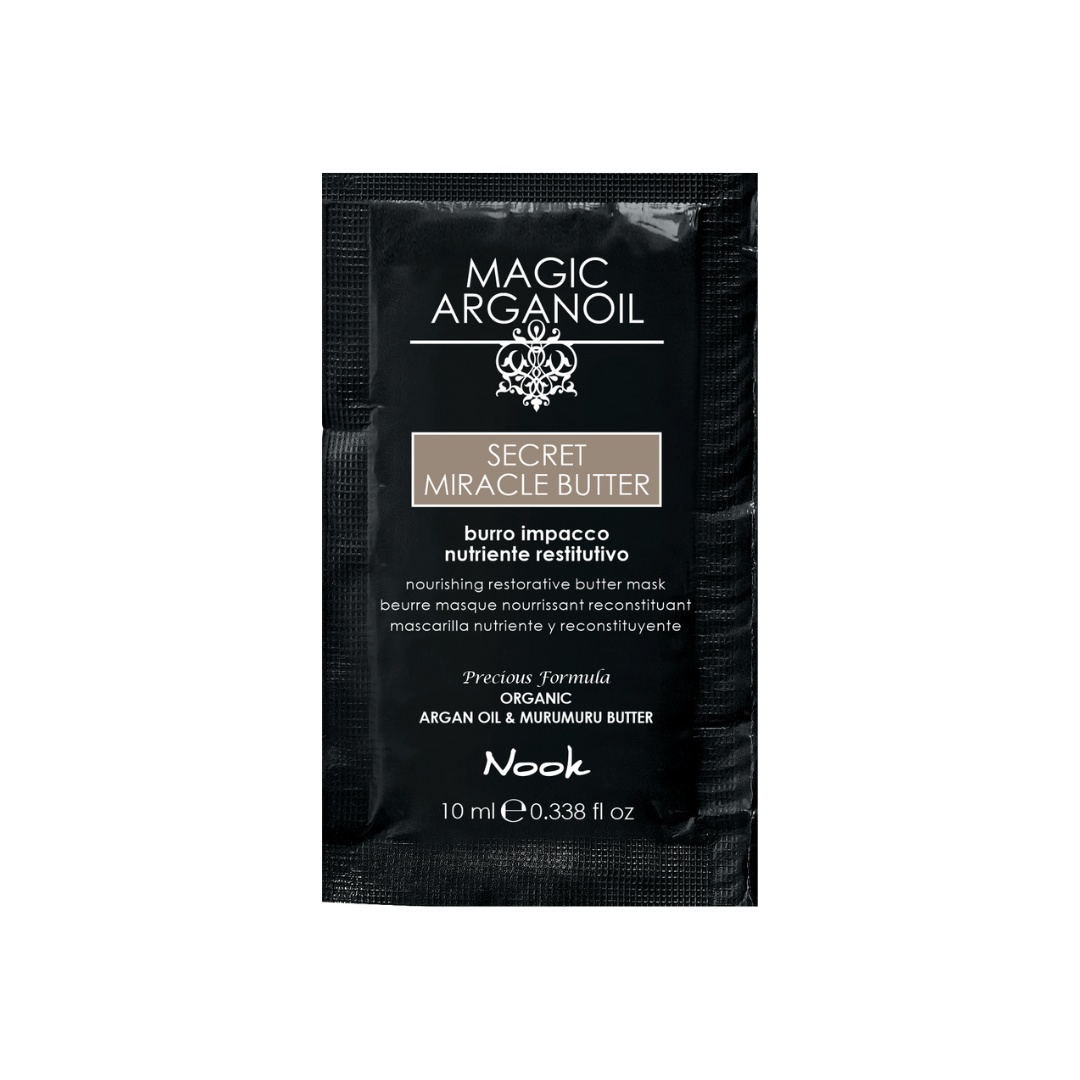 Răsfață părul deteriorat cu Nook Magic Arganoil Secret, o mască restructurantă profesională, formulată cu unt de argan și 91% ingrediente naturale . Acest tratament hrănitor și hidratant repară fibra capilară fără a încărca părul, lăsându-l moale, mătăsos și strălucitor. Fără SLES, SLS sau sulfați, masca este blândă și prietenoasă cu mediul, având o formulă 84% biodegradabilă . Beneficii Cheie: Reparație și Hidratare: Hrănește și restructurează firul de păr deteriorat. Ingrediente Ecologice: Conține unt de argan și alte ingrediente active din surse ecologice. Textură Ușoară: Nu încarcă sau îngreunează părul. Moale și Elastic: Lasă părul ușor de pieptănat, cu elasticitate naturală. Blând și Natural: 91% ingrediente naturale, fără SLES/SLS, perfect pentru părul fragil sau tratat chimic. Ingrediente: Conține unt de argan nutritiv, cunoscut pentru proprietățile sale de hidratare profundă și reparare. Formula este fără parabeni, SLES, SLS sau sulfați , ideală pentru uz frecvent și pentru un impact redus asupra mediului. Mod de Utilizare: Aplicați pe părul proaspăt spălat, concentrându-vă pe lungimi și vârfuri. Lăsați să acționeze timp de 5-10 minute pentru un efect restructurant complet, apoi clătiți cu apă din abundență. Pentru Cine Este Recomandat: Perfect pentru toate tipurile de păr, în special pentru părul deteriorat, fragil, uscat sau tratat chimic, care necesită hidratare și reparație intensivă. De Ce Nook Magic Arganoil Secret? Pentru că este soluția perfectă pentru un păr mai sănătos și mai strălucitor, oferind o combinație unică de performanță profesională, sustenabilitate și ingrediente naturale. Transformă-ți părul cu Nook Magic Arganoil Secret, o mască restructurantă dedicată îngrijirii complete și sustenabile, preferată de profesioniștii din domeniul beauty.