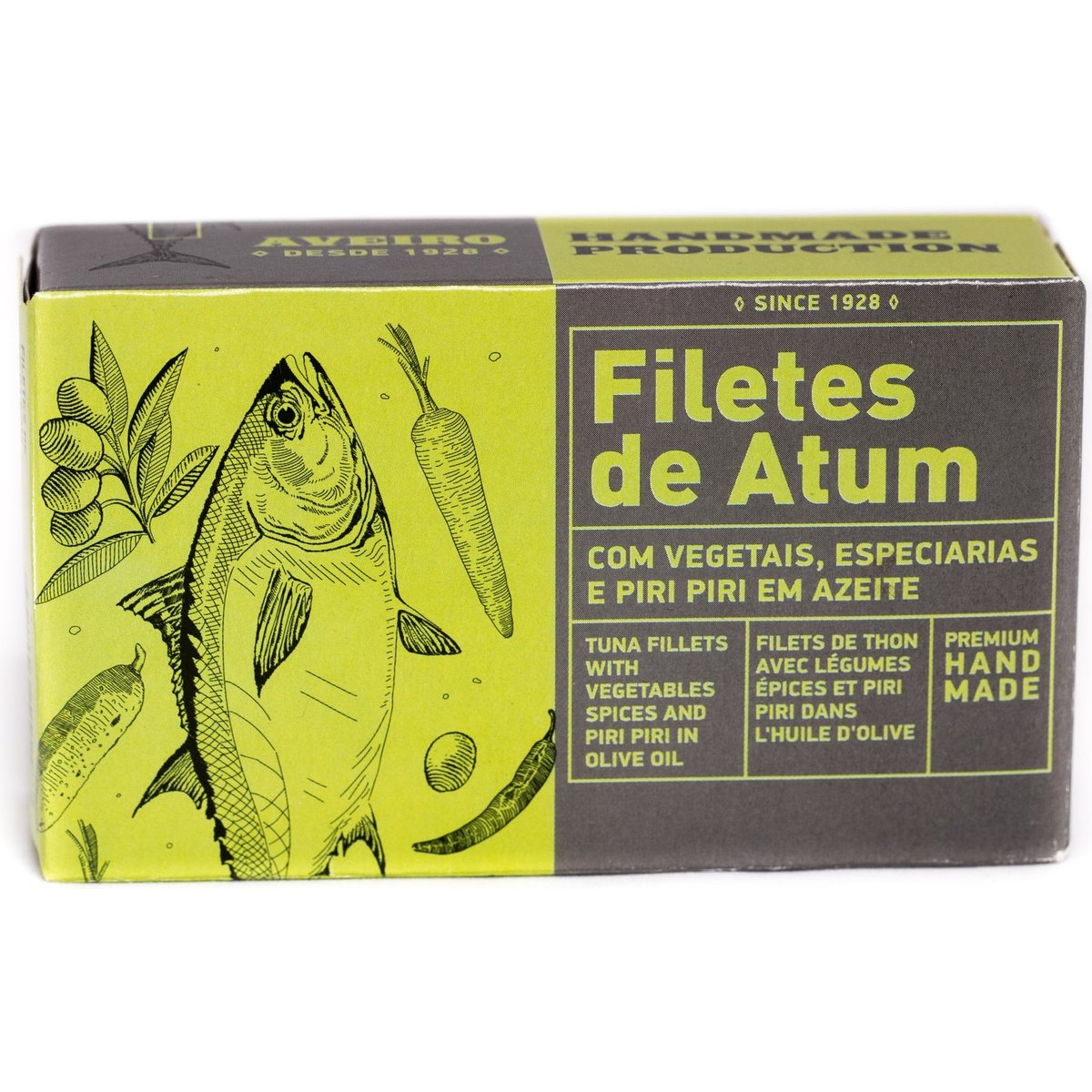 Un adevarat festin in cel mai pur stil portughez! Cu un amestec de emotie si placere, Portugalia este un taram pe care multi isi doresc sa il viziteze!Natura cu peisajele sale care te lasa fara cuvinte, retetele culinare care prin aromele sale iti acapareaza toate simturile, muzica fado care te umple de emotie si traire interioara! Nu poti sa rezisti fara sa-l incerci! Autentica „Aroma de acasa” este ceea ce puteti gasi in aceasta conserva de ton gourmet produsa artizanal, care vine direct de pe coasta Portugaliei, din inima oceanului Atlantic.Inca o data, Portugalia ne surprinde prin calitatea produselor sale si prin combinatiile de arome pe care ni le ofera.Dovada clara a acestui lucru este acest file de ton combinat cu morcov, castavete murat si ardeiul piri-piri care ii confera acea scanteie picanta. Pentru a-i desavarsi gustul, am adaugat in uleiul de masline cateva condimente, precum piper si cuisoare, care ii confera o aroma senzationala.Incercati acest produs si in mod cert veti simti diferenta!Tonul este printre cele mai remarcabile tipuri de fructe de mare din ocean, fiind pretuit de mancaruri si venerat de nutritionisti. Acest tip de carne are un continut scazut de calorii. Acesta este motivul pentru care este foarte popular in randul persoanelor care adera la o nutritie adecvata si urmaresc sa aiba o silueta corespunzatoare.Tonul este foarte bine absorbit de organism, iar acest lucru ajuta la construirea masei musculare. Din aceasta cauza, tonul a castigat popularitate in randul sportivilor.Nu este de neglijat faptul ca acest tip de carne contine o cantitate mare de vitamine diferite, cum ar fi vitaminele B6, A, E, D. Aceste vitamine au un efect pozitiv asupra functionarii sistemului nervos si imunitar.Trebuie sa reamintim ca anumiti reprezentanti ai pestilor marini pot acumula metale grele in corpul lor, mercurul fiind unul dintre aceste metale. Din pacate, tonul este unul dintre ei.Tipul de peste ton folosit in aceasta conserva este Skipjack, cunoscut si sub denumirea de Ton dungat. Aceasta varietate de ton este de dimensiuni mici si nu traieste foarte mult, ceea ce il face sa fie unul dintre cei mai siguri pesti ton din punct de vedere al continutului de mercur. Este preferabil ca atunci cand cumparati orice tip de peste marin, proaspat sau congelat, sa luati peste de dimensiuni mici. Acest lucru va indica faptul ca durata lui de viata a fost mai scurta si, prin urmare, nu a avut timp sa acumuleze o cantitate mare de mercur in corpul sau.