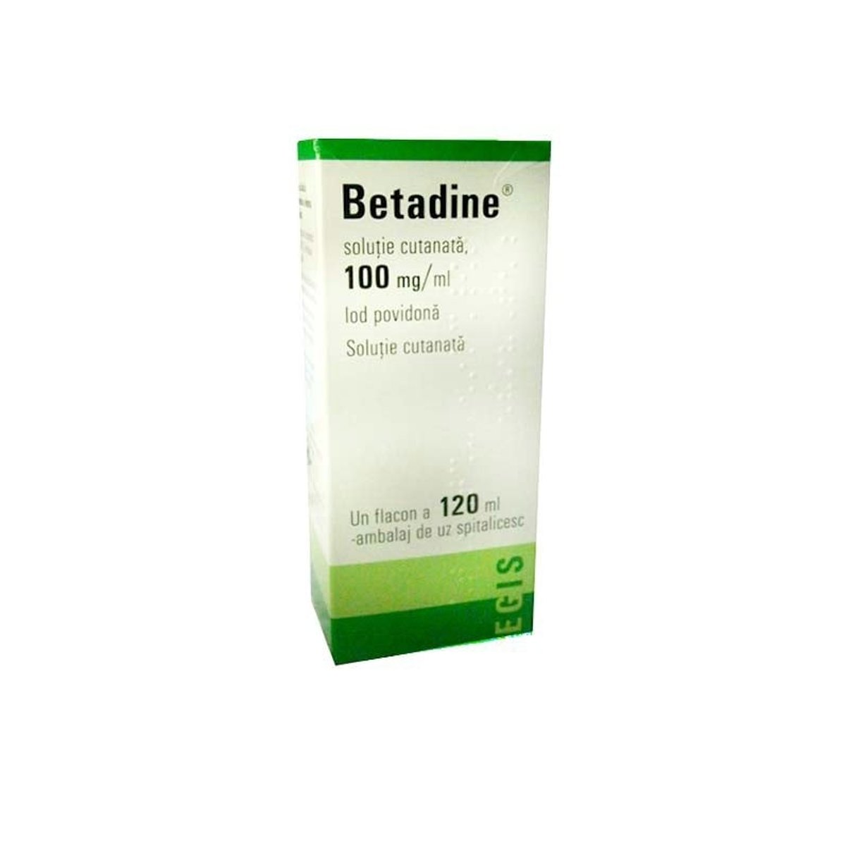 Compozitie. Substanta activa este iod povidona. Un ml solutie contine iod povidona 100 mg. Celelalte componente sunt: glicerol, nonoxinol 9, acid citric anhidru, fosfat disodic anhidru, hidroxid de sodiu (solutie 10%), apa purificata. Indicatii terapeutice. Betadine contine iod povidona care este o substanta antiseptica cu spectru larg, actionand impotriva bacteriilor, virusurilor, fungilor si protozoarelor (organisme unicelulare). Betadine se utilizeaza in: - dezinfectia pielii inaintea injectiilor, transfuziilor, perfuziilor, recoltarii probelor de sange, punctiilor, biopsiilor; - dezinfectia preoperatorie a pielii si mucoaselor (partiala sau totala ¿ bai preoperatorii); - asepsia ranilor, inclusiv a arsurilor de la nivelul pielii; - adjuvant in infectii bacteriene si fungice de la nivelul pielii; - interventii oftalmologice, preoperator, sub forma de Betadine solutie diluata. Doze si mod de administrare. Utilizati intotdeauna acest medicament exact asa cum este descris in acest prospect sau asa cum v-a spus medicul dumneavoastra sau farmacistul. Discutati cu medicul dumneavoastra sau cu farmacistul daca nu sunteti sigur. Betadine se aplica fie ca atare, fie sub forma diluata. Betadine nu se dilueaza cu apa fierbinte, ci cu apa la temperatura corpului. Solutia nu este indicata pentru administrare orala. Pentru dezinfectia preoperatorie a pielii trebuie evitata prelingerea solutiei in afara campului operator (risc de iritare a pielii). Aplicarea de Betadine sub forma nediluata, pentru dezinfectia pielii intacte inainte de injectii, transfuzii, perfuzii, recoltarea probelor de sange, punctii, biopsii, ca si pentru dezinfectia ranilor sau arsurilor: solutia cutanata poate fi utilizata de cateva ori pe zi. Utilizarea Betadine pentru dezinfectia mainilor se face astfel: - dezinfectia uzuala a mainilor - 2 x 3 ml solutie nediluata se lasa in contact pentru 30 secunde; - dezinfectia preoperatorie a mainilor - 2 x 5 ml solutie nediluata se lasa in contact pentru 5 minute. Pentru dezinfectia pielii se utilizeaza solutia nediluata si se lasa in contact pana la uscare. in cazul in care este necesara o solutie izotona, dilutia se realizeaza cu ser fiziologic sau cu solutie Ringer. Precautii. inainte sa utilizati Betadine, adresati-va medicului dumneavoastra sau farmacistului. in pregatirea preoperatorie, evitati contactul prelungit cu pielea pacientului. Expunerea prelungita la solutie poate determina iritatii sau rareori reactii grave la nivelul pielii. Pot sa apara arsuri chimice ale pielii datorita contactului prelungit. intrerupeti tratamentul in cazul aparitiei de iritatii pe piele, dermatite de contact sau reactiilor de hipersensibilitate. Nu incalziti medicamentul inainte de utilizare. Nu lasati la indemana copiilor. La administrarea unor cantitati mari de iod, pacientii cu gusa, noduli tiroidieni, sau alte afectiuni non acute ale tiroidei prezinta risc de a dezvolta hiperactivitate a functiei tiroidei (hipertiroidism). in lipsa unor indicatii stricte, la aceasta categorie de pacienti aplicarea solutiei de iod povidona nu trebuie sa se faca pentru o perioada lunga de timp si pe o suprafata mare a pielii. Chiar si dupa terminarea tratamentului trebuie urmarita o posibila aparitie a unor simptome de hipertiroidism si daca este necesar trebuie monitorizata functia tiroidei. Tratamentul nu trebuie utilizat inainte sau dupa scintigrafie cu iod radioactiv sau tratament cu iod radioactiv pentru tratamentul carcinomului tiroidian. Se recomanda evitarea administrarii la pacienti cu insuficienta renala. La persoane cu o piele mai sensibila, poate sa apara rar o eruptie trecatoare la nivelul pielii. Pentru a evita acest fenomen, utilizarea Betadine la nivelul pielii trebuie testata inainte de utilizarea regulata. Trebuie evitat contactul cu ochii. Dupa utilizare, se clatesc bine mainile. Utilizarea pe o perioada prelungita (mai mult de 14 zile) sau pe suprafete mari (mai mult de 10% din suprafata corporala) la pacientii cu tulburari latente a functiei tiroide (in special la varstnici) trebuie facuta numai dupa cantarirea balantei beneficiu terapeutic/risc. Acesti pacienti trebuie atent monitorizati chiar si 3 luni dupa intreruperea tratamentului. Proprietatile oxidante pot determina deteriorarea unor metale, in timp ce plasticul sau materialul textil este rezistent la iod povidona. in unele cazuri poate aparea o modificare a culorii de multe ori reversibila. Petele de Betadine pot fi inlaturate de pe materialele textile prin spalare cu apa calda si sapun, iar pentru cele persistente se va folosi solutie de tiosulfat de sodiu sau amoniac. Atentionari speciale. Sarcina si alaptarea in timpul sarcinii si alaptarii iod povidona trebuie utilizata numai daca este strict indicata si pe o perioada minima de timp. Deoarece iodul traverseaza placenta si se excreta in laptele matern si din cauza cresterii sensibilitatii fatului sau nou-nascutului la iod, in timpul sarcinii si alaptarii utilizarea iod povidonei trebuie sa se faca in