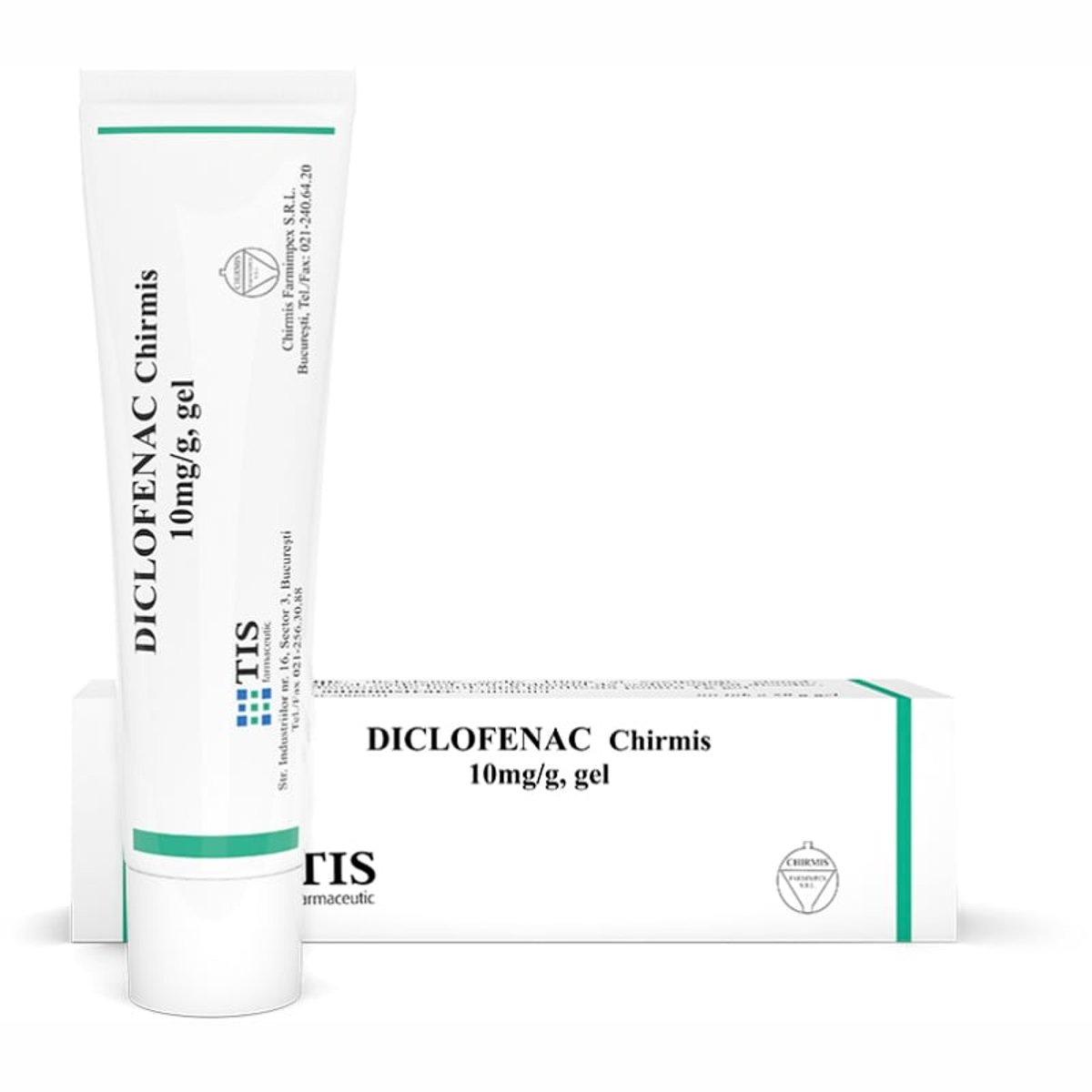 Compozitie. Un gram gel contine diclofenac sodic 10 mg. Excipienti: propilenglicol 100 mg/g, p-hidroxibenzoat de metil 1 mg/g Indicatii terapeutice. Tratamentul local simptomatic al: - durerilor musculare sau osteoarticulare de origine reumatica; - edeme postoperatorii si posttraumatice; - durerilor musculare sau osteoarticulare de natura traumatica (traumatisme usoare ale tendoanelor, ligamentelor etc.) Doze si mod de administrare. Adulti Diclofenac Chirmis se administreaza extern, 2 - 4 aplicatii pe zi, la nivelul zonei afectate. Pentru a realiza absorbtia gelului se efectueaza un masaj usor si prelungit la nivelul zonei dureroase si/sau inflamate. Dupa fiecare aplicare, mainile se spala atent. Cu exceptia unor cazuri strict recomandate, in cazul traumatismelor de tesuturi moi sau reumatismului abarticular, gelul nu trebuie utilizat mai mult de 14 zile, iar in cazul durerilor din artrite, pe o perioada mai mare de 21 zile. Daca dupa 5 zile de tratament nu se observa ameliorarea simptomelor sau acestea se agraveaza, diagnosticul si tratamentul trebuie reevaluat. Copii Diclofenac Chirmis nu este recomandat pentru utilizare la copii datorita lipsei datelor privind siguranta. Precautii. Medicamentul nu trebuie aplicat pe mucoase, mai ales la nivel ocular. Nu trebuie aplicat la nivelul unor zone cu leziuni sau plagi cutanate. Aparitia unei eruptii cutanate dupa aplicarea diclofenacului, necesita intreruperea imediata a tratamentului. in cazul utilizarii timp indelungat, se recomanda purtarea de manusi de catre persoanele care aplica gelul. Nu se recomanda aplicarea sub pansament ocluziv. Atentionari speciale. Sarcina si alaptarea La om, nu s-a semnalat nici un efect teratogen la diclofenac, dar pentru a confirma absenta riscului utilizarii diclofenacului in timpul sarcinii, sunt necesare studii epidemiologice suplimentare. in consecinta, medicamentul se administreaza in primele 5 luni de sarcina numai daca este absolut necesar Efecte asupra capacitatii de a conduce vehicule si de a folosi utilaje Diclofenac Chirmis, nu influenteaza capacitatea de a conduce vehicule si de a folosi utilaje. Ambalaj. Cutie cu un tub din PE a 50 g gel. Pagina actualizata la data de: 08.06.2021