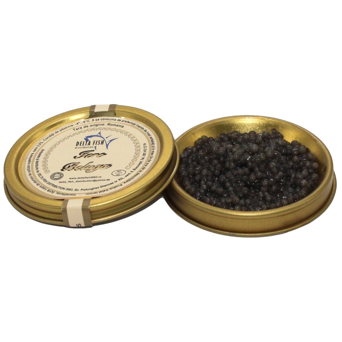 Icrele Negre de Morun, Huso Huso , au o nuanta gri sau negru spre gri si sunt foarte apreciate de cunoscatori. Dimensiunea bobului este foarte mare, de peste 3.5 mm si au suprafata ferma. Marimea este uniforma cu suprafete curate, fara impuritati sau corpuri straine, au o consistenta umeda, elastica cu miros specific. Icrele sunt atent selectionate pentru o calitate deosebita. Pestii de la care au fost extrase icrele sunt crescuti in ferma proprie amplasata in Bazinul Maritim din orasul Sulina, Jud. Tulcea. Pestii au fost hraniti doar cu produse natural ( larve, sprot, rizeafca) , cat si cu hrana pentru pesti ecologica. Femelele ating maturitatea abia la varsta de 16 – 18 ani . Recomandam sa fie consumate crude, pe paine cu unt sau ca atare. Consumul acestora aduce beneficii majore sanatatii organismului. Caviarul contine vitaminele D,B12, fier, magneziu, vitaminele A, E , riboflavina, calciu, fosfor. Caviarul contine substante indispensabile pentru regenerarea si refacearea tesuturilor. Este un miraculous restaurator al epidermei si ridurilor.minus 2+2°C , 24 h de la deschidereConsum ca atare