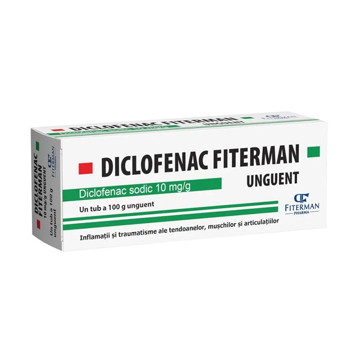 Antiinflamator nesteroidian de prima alegere in dureri cauzate de traumatisme sau procese inflamatorii cronice. Singurul produs topic din Romania care contine diclofenac sodic sub forma de unguent. Forma farmaceutica de unguent permite administrarea insotita de masaj mai ales pentru afectiunile subacute sau cronice, precum si persistenta diclofenacului la locul de administrare mai mult timp. Prezenta mentolului in compozitie confera o senzatie de racoare la nivelul locului de aplicare, ceea ce contribuie la ameliorarea rapida a durerii. Mentolul, prin proprietatea sa de a intensifica local circulatia, joaca si rolul de promotor de absorbtie pentru diclofenac, marind astfel disponibilitatea acestuia de a patrunde, dupa aplicare topica, in profunzime pana la nivelul sursei durerii si inflamatiei. Ingrediente: 1 gram unguent contine diclofenac sodic 10 mg. Contine si alcool cetilstearilic, parafina lichida, vaselina alba, miristat de izopropil, octildodecanol, macrogol cetostearileter 20, Tefose 63 (macrogol 6-stearat, macrogol 32-stearat, stearat de glicol), levomentol, propilenglicol, p-hidroxibenzoat de metil, p-hidroxibenzoat de n-propil, apa purificata. Mod de administrare: Se administreaza extern la adulti, cate 2-4 aplicatii pe zi, la nivelul zonei afectate. Pentru a realiza absorbtia unguentului, se efectueaza un masaj usor si prelungit la nivelul zonei dureroase si/sau inflamate.
