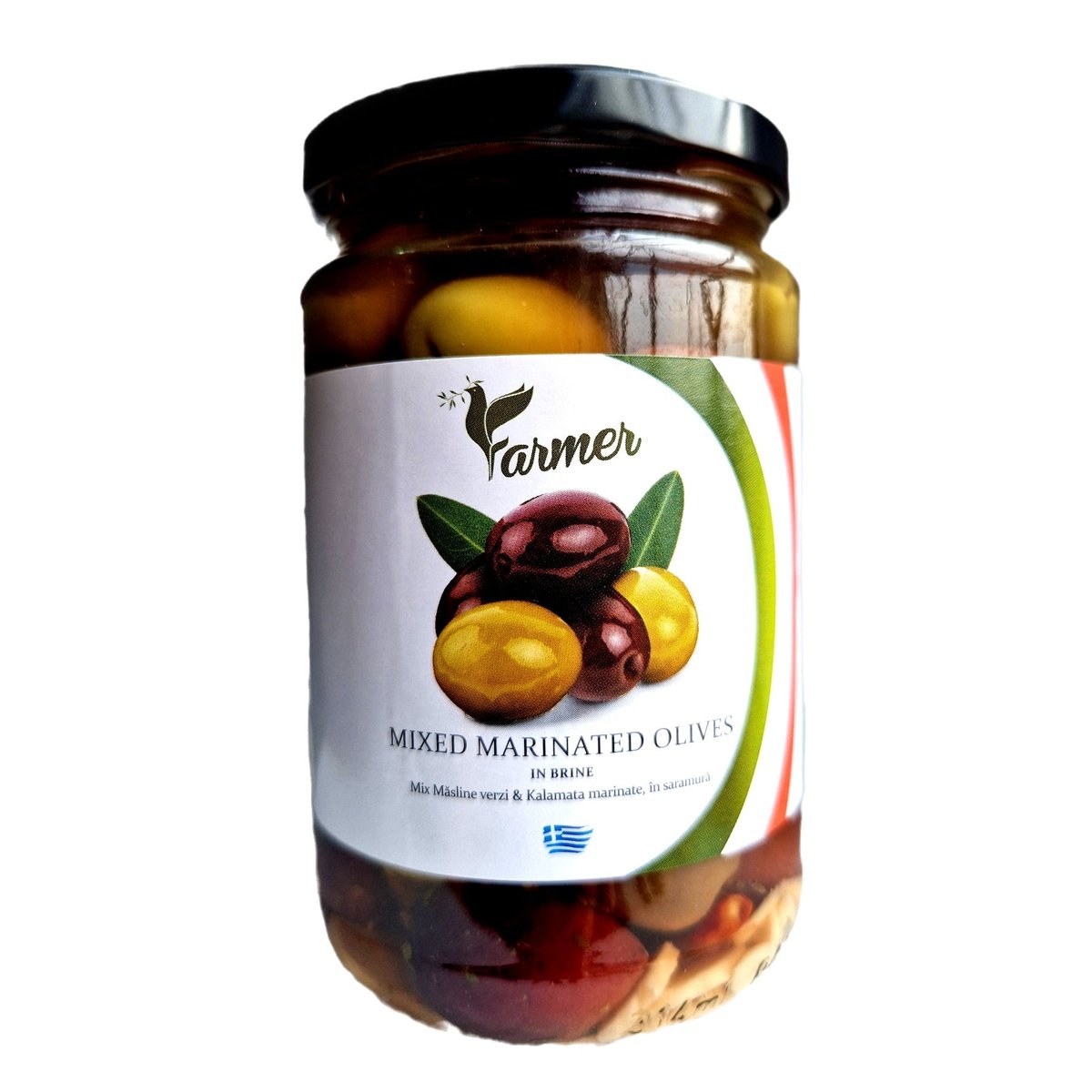 Farmer masline mix verzi & kalamata intregi marinate in saramura , borcan 314 ml, masa neta 290g, origine greciaA se pastra la loc uscat si racoros, ferit de razele soarelui si de inghet. Dupa deschidere a se pastra la frigider si a se consuma in maxim 14 zile.