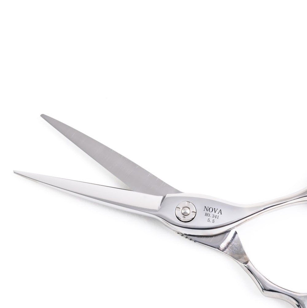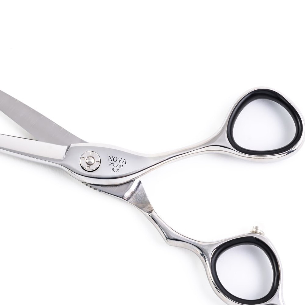 Foarfecă de Tuns Iron King Nova 5.5″ – Geometrie & Offset Clasic (51g) Iron King Nova 5.5 este definiția instrumentului tehnic “de cursă lungă”. Proiectată pentru frizerii care construiesc forme, această foarfecă combină greutatea solidă (51g) cu o lamă perfect dreaptă, oferind stabilitatea necesară pentru tunsori structurate. Fiind un model de 5.5 inch cu o inerție ridicată (datorită greutății), Nova nu “tremură” în mână. Este ancora ta de stabilitate atunci când creezi linii de bază sau forme geometrice. Lamă Dreaptă (Straight Blade) – Efect “Zero Push” : Geometria lamei este calculată pentru a elimina alunecarea părului în timpul închiderii. Tăișul drept prinde secțiunea și o secționează perpendicular, asigurând o linie “brici”. Este opusul foarfecelor de slide; aici vorbim despre construcție și precizie. Sistem Pivotant pe Rulment : Inima foarfecei este rulmentul cu bile de înaltă precizie. Acesta garantează o tensiune constantă pe toată lungimea lamei, de la pivot până la vârf. Mișcarea este fluidă, silențioasă și, cel mai important, uniformă, indiferent de presiunea aplicată de degetul mare. Ergonomie Offset Clasic : Spre deosebire de mânerele 3D (care sunt mulate pe deget), Nova folosește un design Offset Clasic. Acesta permite coborârea cotului pentru a reduce tensiunea în umăr, dar oferă o libertate mai mare de mișcare a degetului mare în inel. Este ideală pentru stiliștii care își schimbă des unghiul de priză. Aplicații Tehnice & Recomandări pentru Iron King Nova: Graduare (Build Weight) : Lama dreaptă și scurtă (5.5″) este perfectă pentru tehnici de graduare, unde ai nevoie de o linie externă curată. Precision Blunt Cut : Tăieturi drepte pe păr umed, unde controlul tensiunii firului de păr este crucial. Detailing & Contur : Vârful ascuțit și stabil permite definirea precisă a perciunilor și a conturului bărbii, fără riscul de a ciupi pielea. Point Cutting Controlat : Greutatea de 51g ajută la o penetrare controlată în masa de păr pentru texturare verticală. Specificații Tehnice: Brand : Iron King. Model : Nova. Dimensiune : 5.5 inch (Universală). Greutate : 51 g (Medie/Solidă). Forma Lamei : Dreaptă (Straight) – Geometrie. Mâner : Offset Clasic. Sistem Pivot : Rulment cu bile. Oțel : SUS 440 A.