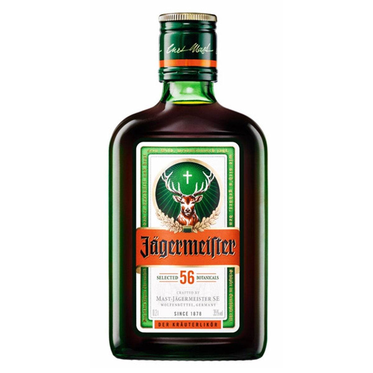 In secolul al XIX- lea Wilhelm Mast era un producator de otet din Germania, insa fiul sau, Curt Mast a decis sa duca afacerea mai departe si sa creeze un produs diferit. Astfel, in anii 1930, in orasul Wolfenbüttel din Saxonia Inferioara, Curt Mast a creat un lichior de plante care a fost la inceput o bautura de sarbatoare pentru vanatori. Dupa ani de cercetare si perfectionare, Curt a stabilit reteta finala pentru un lichior din 56 de ingrediente naturale. Dupa mai bine de 80 de ani, lumea lui Curt s-a schimbat insa alchimia sa a ramas aceeasi. Bautura contine ierburi, muguri, radacini si fructe de cea mai buna calitate, aduse din toata lumea, prelucrate in 4 amestecuri diferite, macerate, apoi amestecate din nou si tinute la maturat in butoi din stejar german timp de 12 luni. Dupa maturare, licoarea isi spune povestea de fiecare data, prin parfum si arome din patru colturile ale lumii. Jägermeister este ingredientul de petrecere si voie buna, in club, sau cine stie, poate la o partida de vanatoare, adanc in padurea cerbului.A se pastra la loc uscat si racoros ferit de inghet si razele soarelui.
