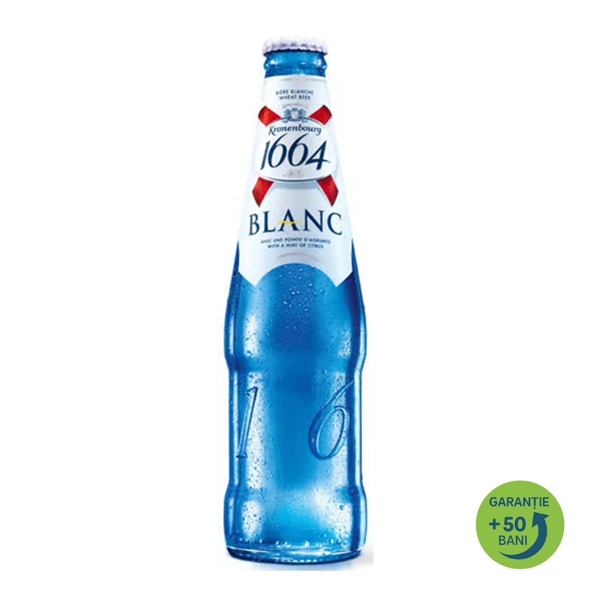 Kronenbourg 1664 Blanc este o bere premium de tip weiss, nascuta in Strasbourg, Franta. Moderna si fructata, aceasta seduce consumatorulmultumita gustului sau si al design-ului unic. Printre ingredientele folosite la producerea acestei beri se numara citricele si coriandrul, care asigura un gust inimitabil, dulce si racoritor, ce transforma Kronenbourg 1664 Blanc intr-o bere speciala printre celelalte beri de acelasi tip, beri de grau (beri albe).Plina de aroma, Kronenbourg 1664 Blanc combina note de citrice si coriandru pentru a oferi o bere de grau care aduce “Joie de vivre a la Française”iubitorilor de bere din zilele noastre. Istoria berii Kronenbourg 1664 Blanc este strans legata de membrii familiei Hatt, fondatorii Braseriilor Kronenbourg. 1664, anul in care Jérôme Hatt a devenit Maestru Berar si si-a deschis propria fabrica de bere in centrul istoric al orasului Strasbourg, a devenit parte din denumirea berii.Pregatita cu note de citrice si coriandru, 1664 Blanc are o aroma dulce si racoritoare inimitabila care o face speciala fata de toate celelalte beri de grau (beri albe). Datorita aromei si designului sau, 1664 Blanc reprezinta eleganta si gustul Frantei. La producerea berii se utilizeaza culturi speciale de drojdie, malt atent selectionat precum si celebrul hamei Strisselspalt, un tip de hamei crescut exclusiv in Franta si denumit “caviarul hameiului”. Sticla albastra, moderna si eleganta o face perfecta pentru toate clipele petrecute alaturi de prieteni. Kronenbourg 1664 Blanc este dovada clara a faptului ca francezii pot aduce stilul si rafinamentul in bere printr-o reteta cu adevarat speciala.A se pastra intr-un loc uscat si la temperatura camerei