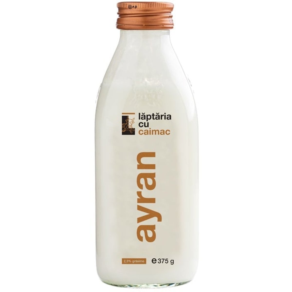 Ayran, 375 g, 2,3 % grasimeNatural 100%, produs din lapte de la vaca, fara aditivi sau stabilizatori, pasteurizat la temperatura joasaAyran de la Laptaria cu caimac este o bautura de iaurt, sarata, cu origini orientale. Racoritor, potoleste foamea si setea fiind ideal dupa mancaruri picante sau dulci!Laptaria cu caimac a creat acest produs pentru Calif, de unde si eticheta cu motive, inspirata din brandingul lor Consumat in mod traditional in timpul mesei alaturi de produse specifice, Ayranul poate fi baut de asemenea simplu sau condimentat cu ierburi aromatice precum menta, busuioc.pastreaza intre +2 si +6°C. Dupa deschidere, consuma in 48 ore.