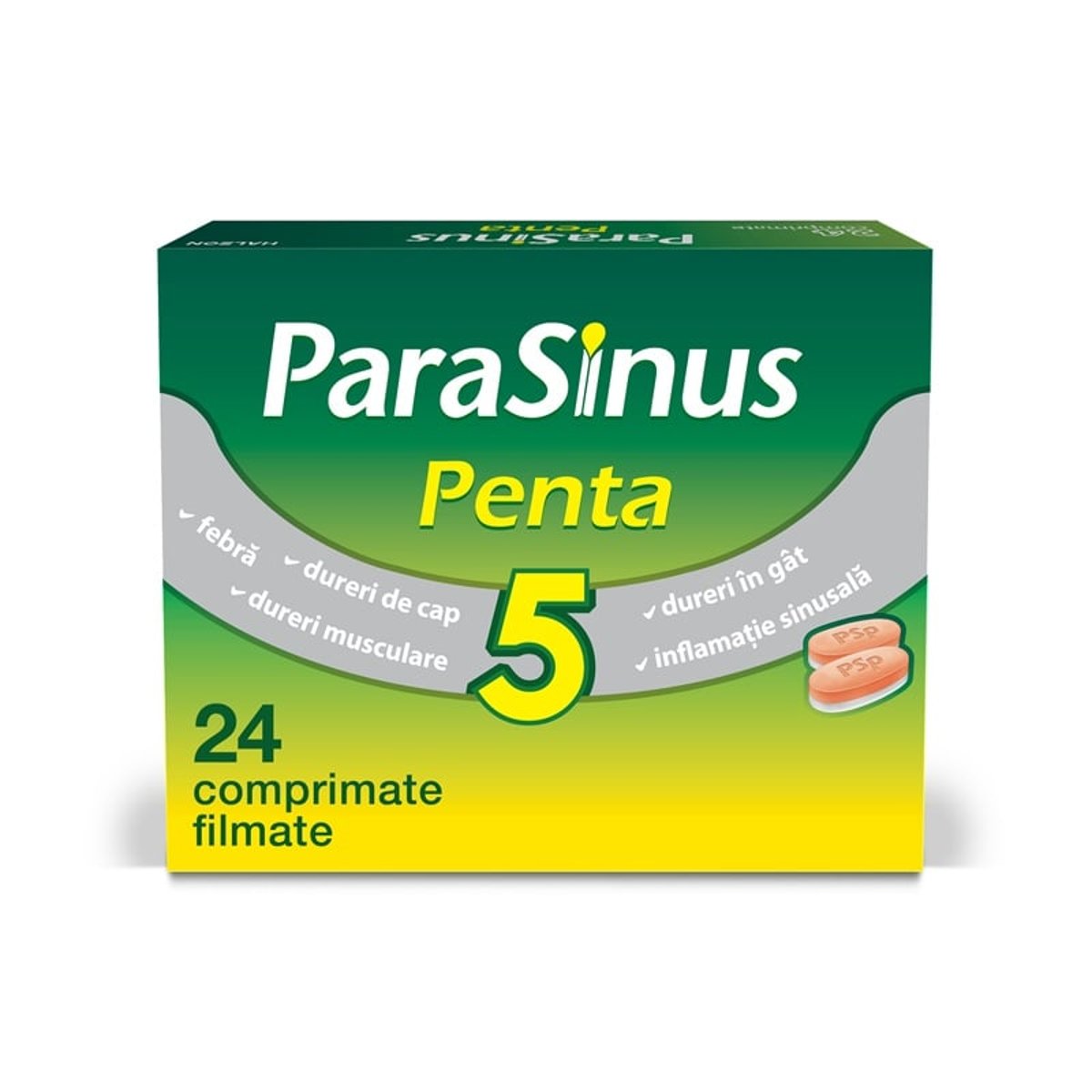 Descriere: ParaSinus Penta este utilizat pentru ameliorarea simptomelor de raceala si gripa, incluzand febra, dureri de cap, dureri musculare, dureri in gat, precum si a simptomelor asociate inflamatiei sinusurilor (nas infundat, durere la nivelul sinusurilor si rinoree) Ingrediente: - Substantele active sunt paracetamol, cafeina, clorhidrat de fenilefrina, terpinhidrat si acid ascorbic (vitamina C). Fiecare comprimat contine paracetamol 500 mg, cafeina 25 mg, clorhidrat de fenilefrina 5 mg, terpinhidrat 20 mg si acid ascorbic 38 mg. - Celelalte componente sunt amidon pregelatinizat, amidon de porumb, povidona, sorbat de potasiu, laurilsulfat de sodiu, Eurocol galben amurg (E 110), acid stearic, talc. Mod de administrare: Adulti, varstnici si adolescenti (copii cu varsta peste 12 ani): doza uzuala este de 1-2 comprimate administrate la fiecare 4-6 ore, fara a se depasi 8 comprimate in 24 de ore. Intervalul minim intre administrari trebuie sa fie de 4 ore. Nu depasiti doza recomandata. Nu se continua tratamentul mai mult de 7 zile, fara sfatul medicului. Copii cu varsta sub 12 ani: ParaSinus Penta nu se administreaza copiilor cu varsta sub 12 ani. Daca simptomele persista consultati medicul. Daca simptomele nu se amelioreaza sau se agraveaza dupa 3 zile de tratament, situatia clinica trebuie reevaluata.