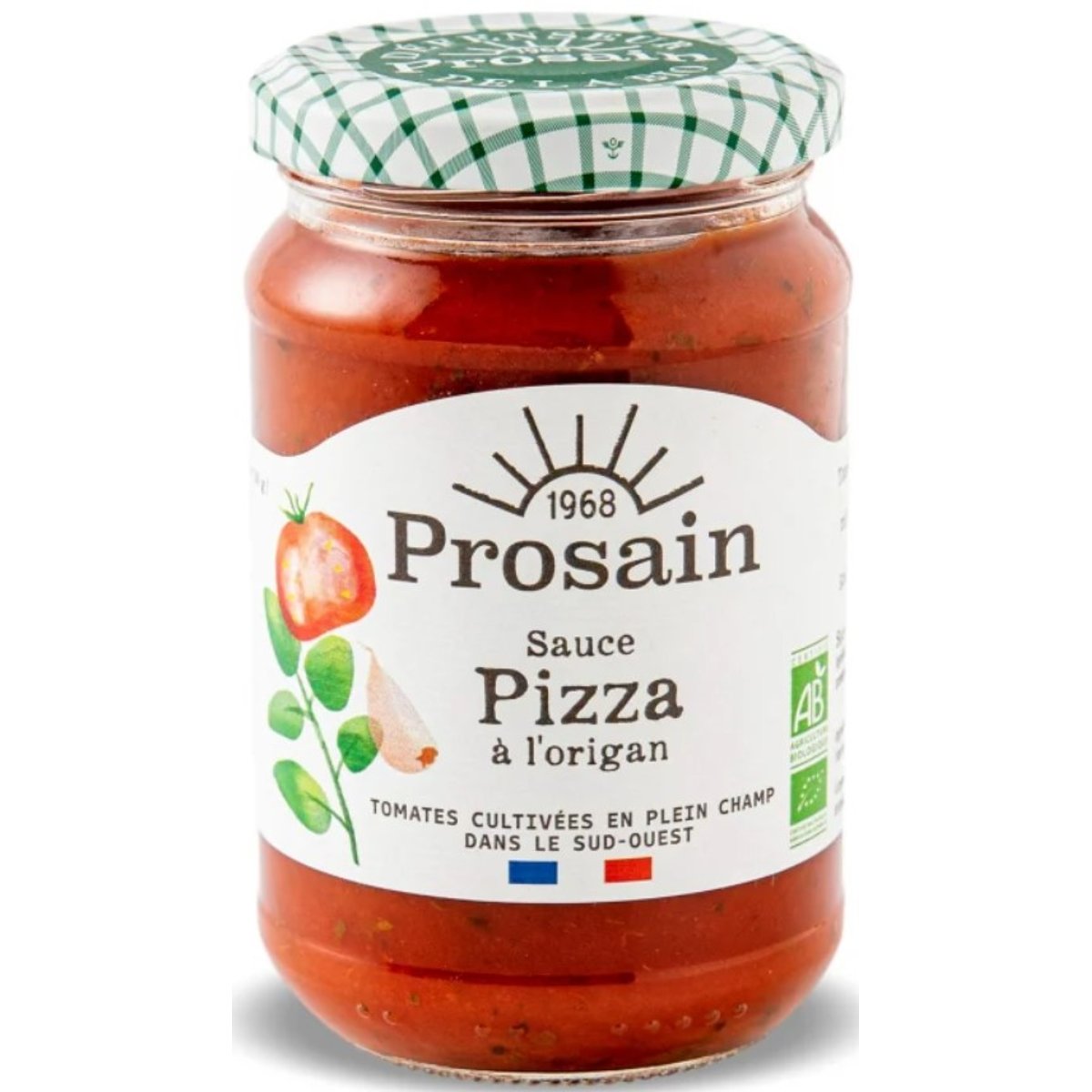 Sosul autentic pentru Pizza bio Prosain are un gust excelent, este usor de intins pe blat si contine doar zaharuri in mod natural.Este perfect pentru o pizza sanatoasa, fiind gatit cu oregano, rosii ecologice si ulei de masline extravirgin presat la rece. Rosiile sunt cultivate in sud-vestul Frantei, recoltate in sezonul cel mai potrivit si gatite in urmatoarele ore, imediat dupa recoltare.In vederea pregatirii unei pizza de calitate, intinde un strat de sos Prosain pe aluatul de pizza proaspat, orneaza cu parmezan si ingredientele preferate, apoi adauga preparatul la cuptor.Se pastreaza intr-un loc uscat si racoros, ferit de razele soarelui. Dupa deschidere, se pastreaza la frigider și se consuma in cel mai scurt timp.In vederea pregatirii unei pizza de calitate, intinde un strat de sos Prosain pe aluatul de pizza proaspat, orneaza cu parmezan si ingredientele preferate, apoi adauga preparatul la cuptor.