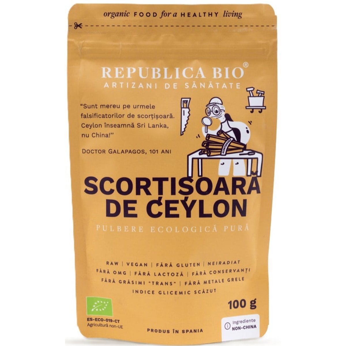 De ce sa alegi produsul?• Certificat ecologic: Produs conform standardelor stricte ale Uniunii Europene pentru agricultura ecologica, fara organisme modificate genetic, neiradiat.• Fara alergeni: Fara urme de gluten, lactoza, nuci, alune, soia, ou sau alte alergene, potrivit pentru diete speciale.• Testat fizico-chimic: Verificat impotriva pesticidelor, metalelor grele si contaminantilor.• Ambalat intr-o fabrica fara gluten: Produsul este ambalat intr-o unitate ce nu proceseaza gluten, garantand lipsa contaminarii incrucisate.Ideal pentru:• Persoane care doresc sa isi imbunatateasca sanatatea digestiva: Sustine digestia si ajuta la reglarea tranzitului intestinal.• Cei care doresc sa mentina un nivel sanatos de zahar in sange: Scortisoara de Ceylon poate contribui la reglarea glicemiei.• Persoanele care urmaresc o dieta echilibrata: Potrivit pentru cei care cauta un produs fara gluten, lactoza sau alti alergeni.• Utilizare culinara: Ideal pentru a condimenta prajituri, smoothie-uri, budinci si alte preparate dulci sau bauturi.Beneficii cheie:• Antioxidant puternic: Protejeaza celulele impotriva radicalilor liberi si stresului oxidativ, sprijinind sanatatea generala si prevenind imbatranirea prematura a organismului.• Susține digestia: Contribuie la stimularea apetitului si imbunatațeste confortul digestiv, favorizand un tranzit intestinal sanatos si o digestie eficienta.• Regleaza glicemia: Ajuta la menținerea unui nivel stabil si sanatos al zaharului in sange, prevenind fluctuațiile glicemiei si susținand echilibrul metabolic.• Fara alergeni: Este un produs sigur pentru persoanele cu sensibilitați alimentare, fiind lipsit de alergeni comuni precum glutenul, lactoza sau nucile, ideal pentru dietele restrictive.• Pastreaza produsul in ambalajul original, la temperatura camerei, ferit de umiditate si de razele directe ale soarelui.• Mod de utilizare: Adauga scortisoara in prajituri, smoothie-uri, shake-uri proteice, sucuri de fructe sau infuzii. Este potrivita si pentru preparate precum budinci, torturi si deserturi.• Doza recomandata: Consuma aproximativ 6g pe zi, nu mai mult de 6 saptamani consecutive.