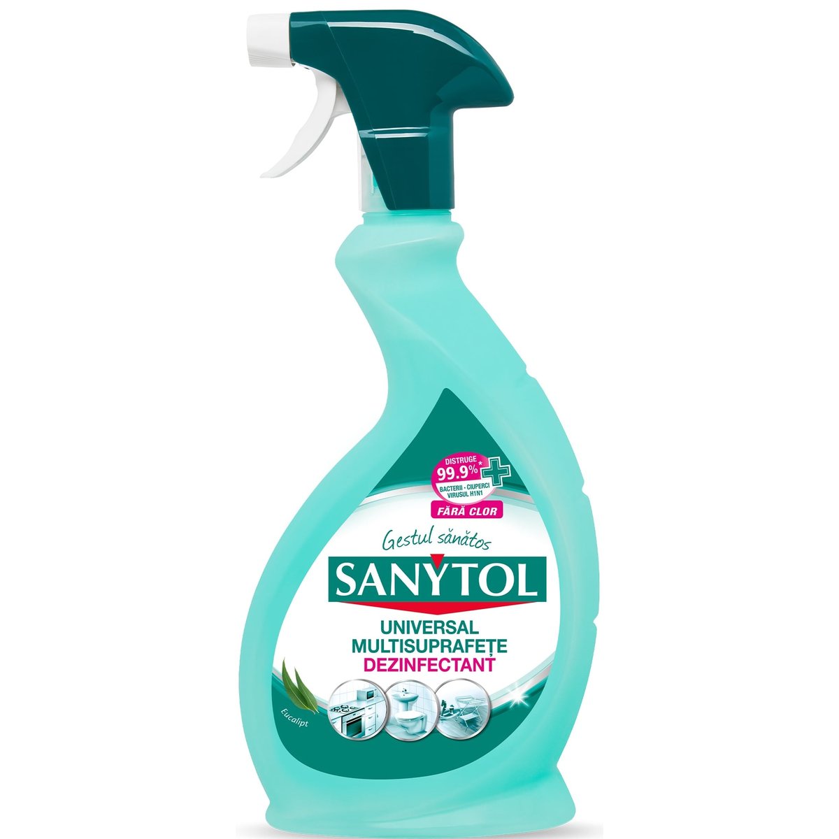 Distruge bacteriile, ciupercile, virusurile testateFolosirea unui dezinfectant pentru curatare este singurul mod de a impiedica cu eficacitate proliferarea bacteriilor, fungilor si virusilor. Sanytol Dezinfectant Universal Multisuprafete, fara clor, garanteaza o igiena perfecta si distruge micro-organismele.*Timpul de actiune:5 min eficacitate bactericida impotriva Staphylococcus aureus, Enterococcus hirae, Escherichia coli si Pseudomonas aeruginosa si 15 min eficacitate fungicida impotriva Candida albicans si Aspergillus niger conform standardului EN 13697. 5 min eficacitate impotriva Virusul Herpes Simplex tipul 1 si virusului gripal A H1N1 conform normei EN 14476. Lasati sa actioneze timp de 15 minute (tripla actiune) si stergeti cu o carpa curata. Eficacitatea sa este probata si controlata de un laborator autorizat. Testat dermatologic. Acest produs este aprobat de Ministerul Sanatatii.Fara clorNu pateazaParfum proaspat si placutTipul de produs 2: Produse utilizate pentru dezinfectarea suprafetelor (materialelor, echipamentelor si mobilierului). Contine: <5%: Tensioactiv Neionic, Tensioactiv Cationi. Dezinfectant, Parfumuri (Linalool, Hexyl Cinnamal, Limonene).Avizul nr 2802BIO/02/12.24PRECAUTII:H412: Nociv pentru mediul acvatic cu efecte pe termen lung. NU INGHItItI. P101: Daca este necesara consultarea medicului, aratati recipientul sau eticheta produsului.P102: A nu se lasa la indemana copiilor. P301+P312: iN CAZ DE iNGHItIRE: Sunati la un CENTRU PENTRU OTRaVIRI (Biroul RSI-Tel. 0213183606) daca nu va simtiti bine. PS01: Aruncati continutul si recipientul conform reglementarilor nationale in vigoare, specific in domeniul deseurilor. RECOMANDaRI: Pentru suprafete delicate, incercati produsul pe o zona mai putin vizibila. Substanta activa biocid: 0,5% clorura de didecildimetilamoniu (EC 230-525-2; CAS: 7173-51-5)Indicatii de utilizare:Prin pulverizare direct pe suprafata (100%).Domeniul de utilizare:Dezinfectante si algicide care nu sunt destinate aplicarii directe la oameni sau animale.Aria de aplicare:Dezinfectia suprafetelor: capace de closete, obiecte sanitare, sifoane, faianta, suprafete lavabile, aparate electrocasnice, saltele, covoare, mochete, canapele, telefoane, calculatoare, galeti de gunoi.Categoria de utilizatori:Populatie.
