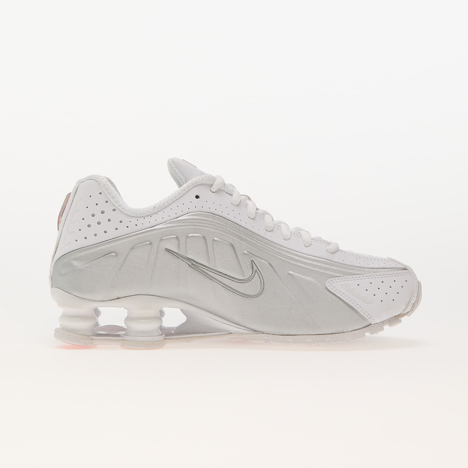 Nike Sneakers W Shox R4 White/ White-Metallic Silver-Max Orange, Damă, Mărime 44.5