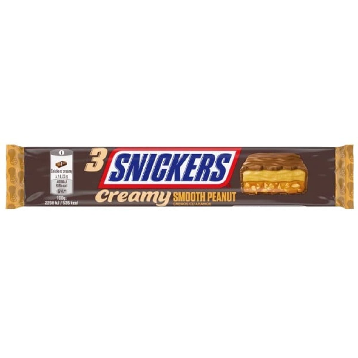 **Snickers Creamy Smooth Peanut Trio – Cremozitate irezistibila!** Descopera noul **Snickers Creamy Smooth Peanut Trio**, un baton de ciocolata cu un twist delicios! De aceasta data, textura crocanta a alunelor este înlocuita cu un **unt de arahide fin si cremos**, combinat perfect cu caramel catifelat si învelit într-un strat generos de ciocolata cu lapte. Fiecare muscatura îti ofera echilibrul ideal între dulce, cremos si intens, pentru o experienta de rasfat suprem! Alunele sunt o sursa excelenta de **proteine si grasimi sanatoase**, oferindu-ti energie de lunga durata. Combinatia dintre unt de arahide si ciocolata îti satisface pofta de dulce, mentinandu-ti în acelasi timp senzatia de satietate. Savureaza-l ca **gustare rapida** între mese sau atunci cand ai nevoie de un boost de energie. Pentru un plus de savoare, încearca-l usor refrigerat – ciocolata devine mai crocanta, iar umplutura cremoasa ramane la fel de irezistibila! Se potriveste perfect cu **bauturi calde** precum cafeaua sau cappuccino, dar si cu un pahar de lapte rece. Daca îti plac gustarile dulci-cremoase, încearca si alte batoane cu unt de arahide sau caramel! **Snickers** face parte din portofoliul unuia dintre cei mai mari producatori de dulciuri din lume. Cu o traditie îndelungata, brandul combina **gustul autentic** cu retete inovatoare, oferind batoane energizante si delicioase pentru orice moment al zilei.Producție: MARS ROMANIA SRL Strada Aviator Popisteanu,nr 54A,Expo Business Park, cladirea1,etaj 5,Bucuresti, Sector 1, Cod Postal 012095A se depozita la temperaturi cuprinse intre 5°-22°C.