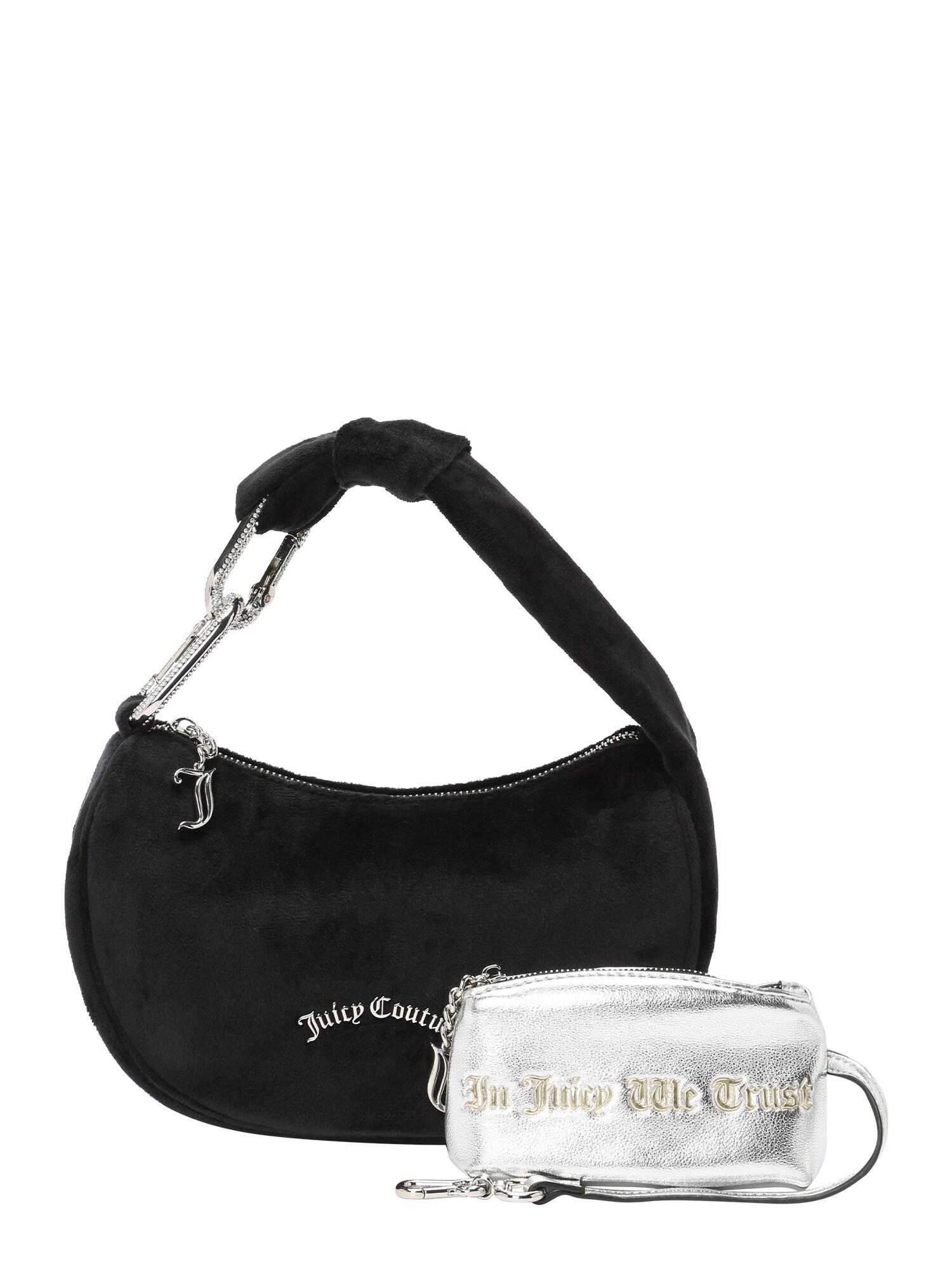 Juicy Couture Poșetă Blossom negru, catifea/nicki textil, mică (<25 l), fermoar, husă/toc incluse, curea crossbody și toartă