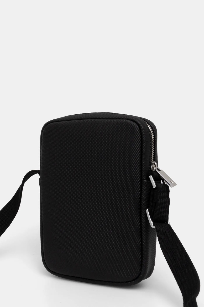 Lacoste borsetă neagră NH4422HC, curea lungă reglabilă nedetasabilă, buzunar frontal cu alunecare, buzunar interior cu fermoar, 21×15×4 cm
