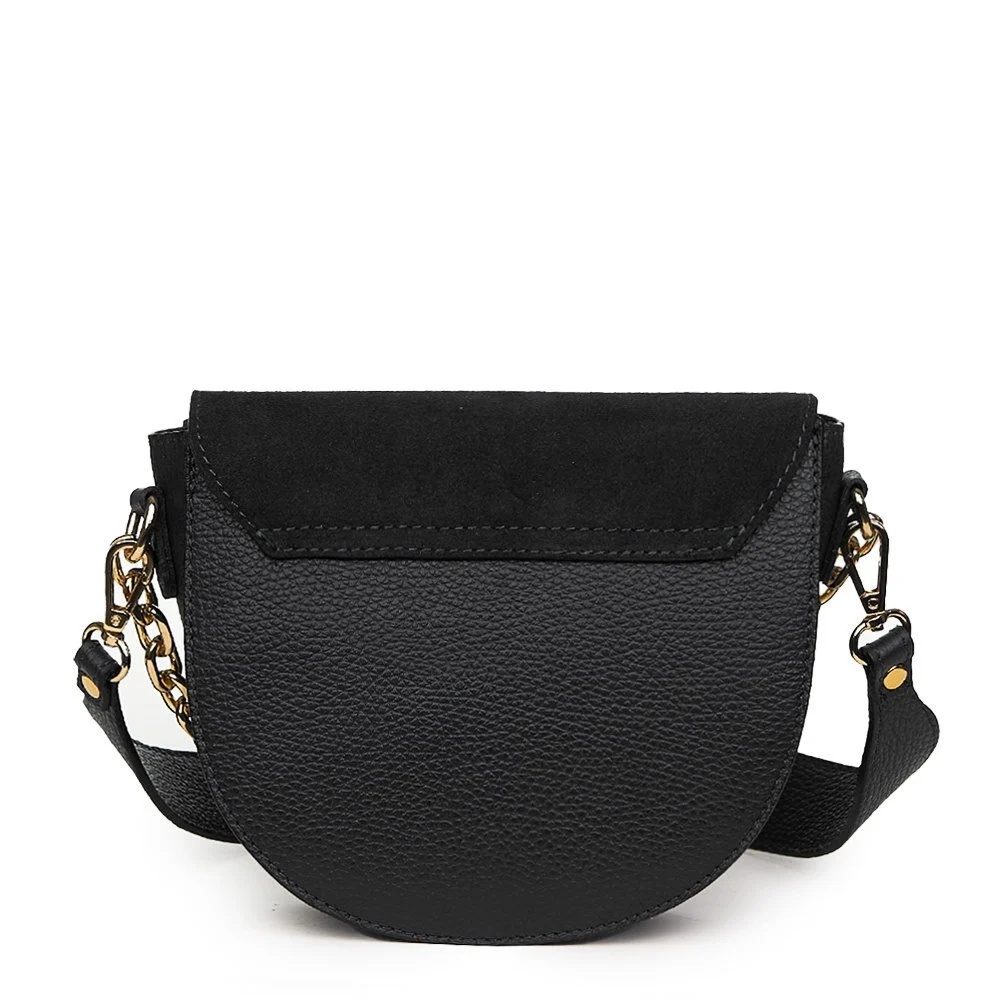 Poseta dama din piele naturala Donna neagra este un model distins, potrivit pentru tinute casual sau ocazii. Se remarca prin capacul confectionat dintr-un material (piele intoarsa) diferit de corpul posetei si prin manerul din lant auriu. Poate fi purtata pe umar cu ajutorul celor doua bretele detasabile, una mai lunga, reglabila, si alta mai scurta. Prezinta un compartiment inchis cu fermoar iar la interior, poseta Donna dispune de un buzunar inchis cu fermoar. MATERIAL: piele naturalaDIMENSIUNI (inaltime x lungime x latime): 18 x 20 x 8cmGREUTATE: 480gCOMPARTIMENTE: un compartimentBUZUNARE: buzunar interior cu fermoarSISTEM DE PRINDERE: maner din zale + bretea de umar detasabila scurta (60cm) + bretea de umar detasabila, reglabila, lunga (65-130cm)CULOARE ACCESORII: auriu