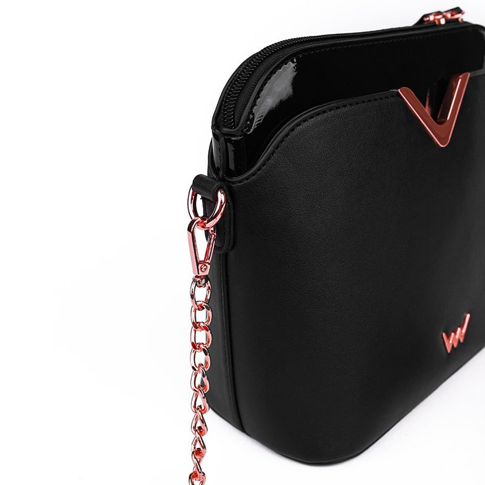 VUCH Geantă de mână damă FOSSY, negru, mică, detalii argintii