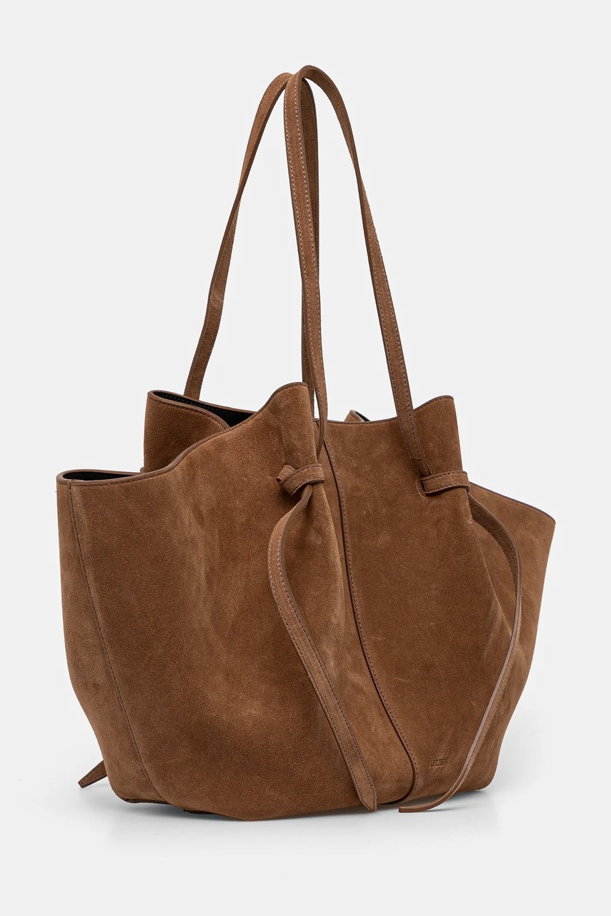 Yuzefi geantă de mână din piele întoarsă LARGE MOCHI culoarea maro, YUZSS24-HB-LM-S015