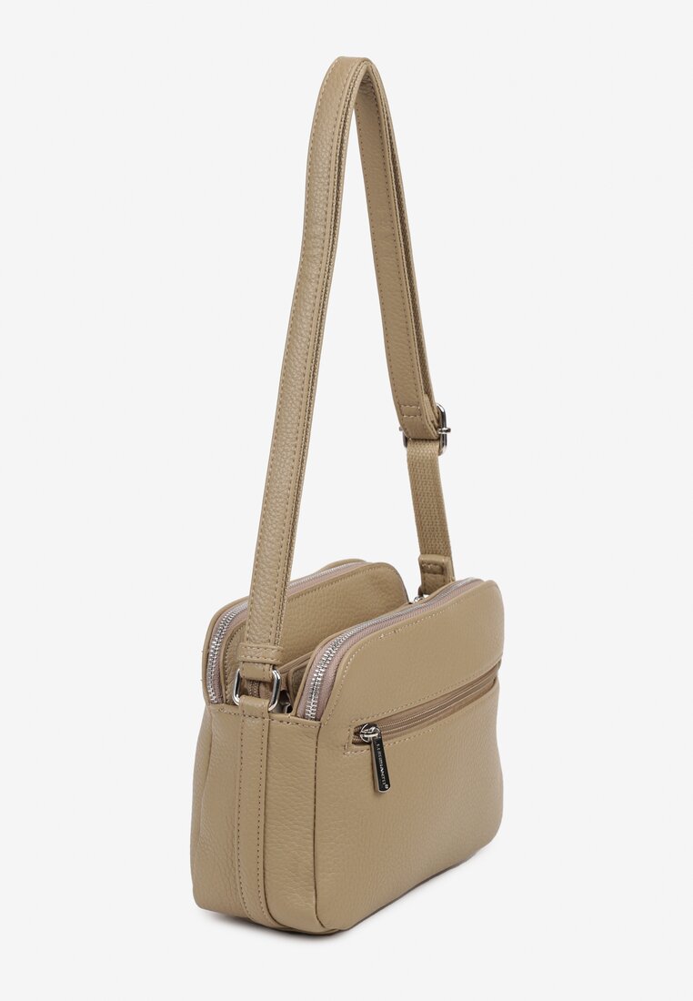 Geantă bej închisă tip poștaș cu decorație metalică Tanalenia