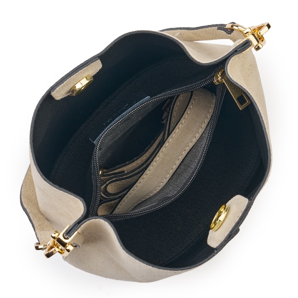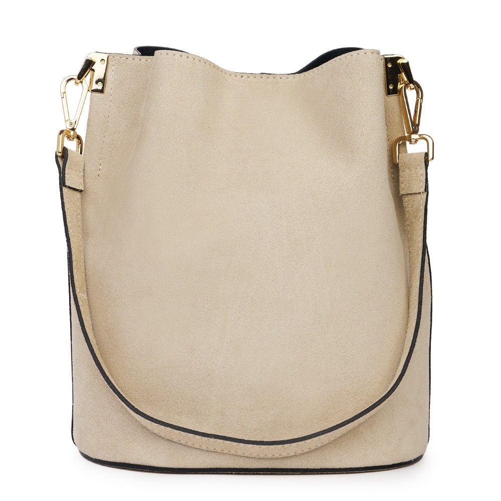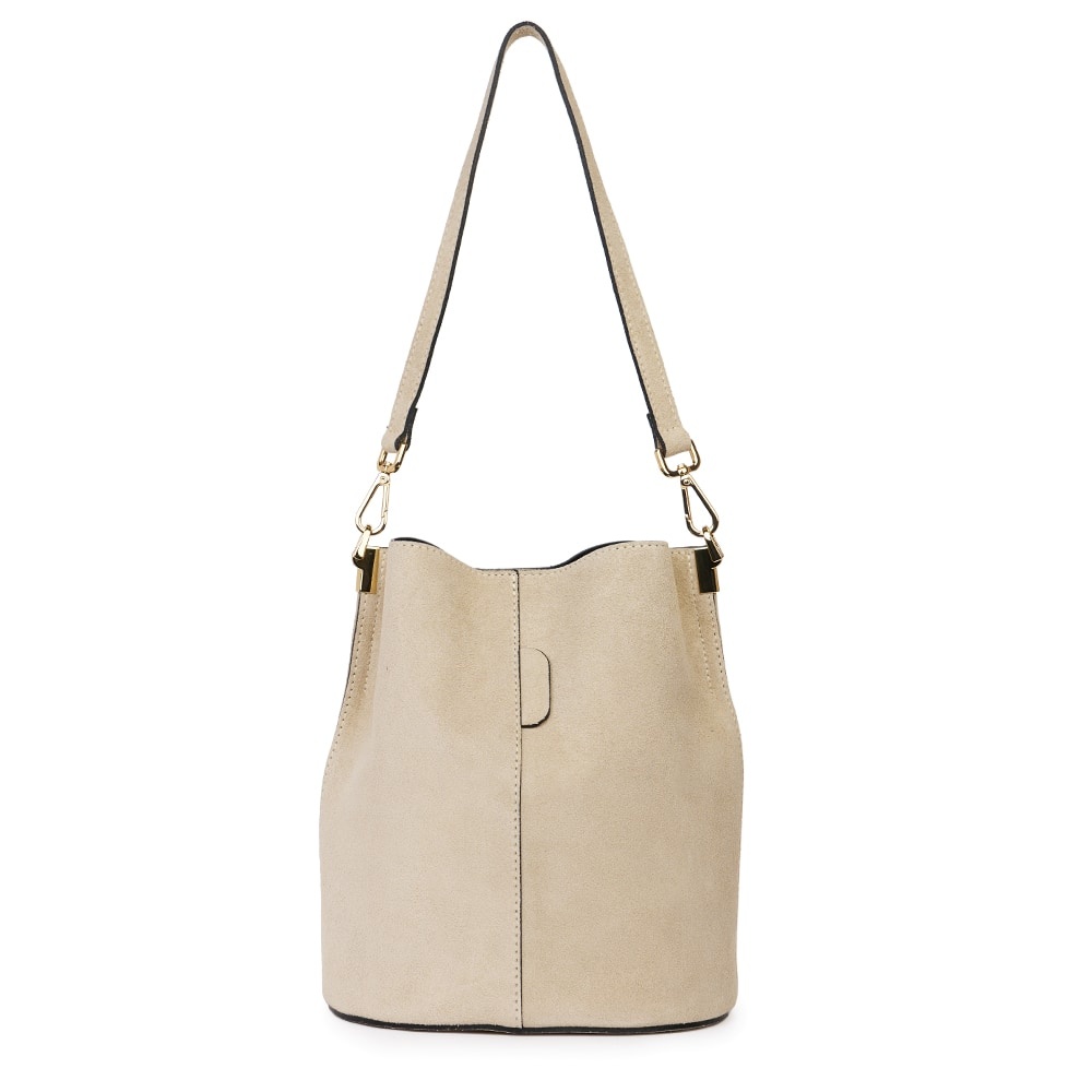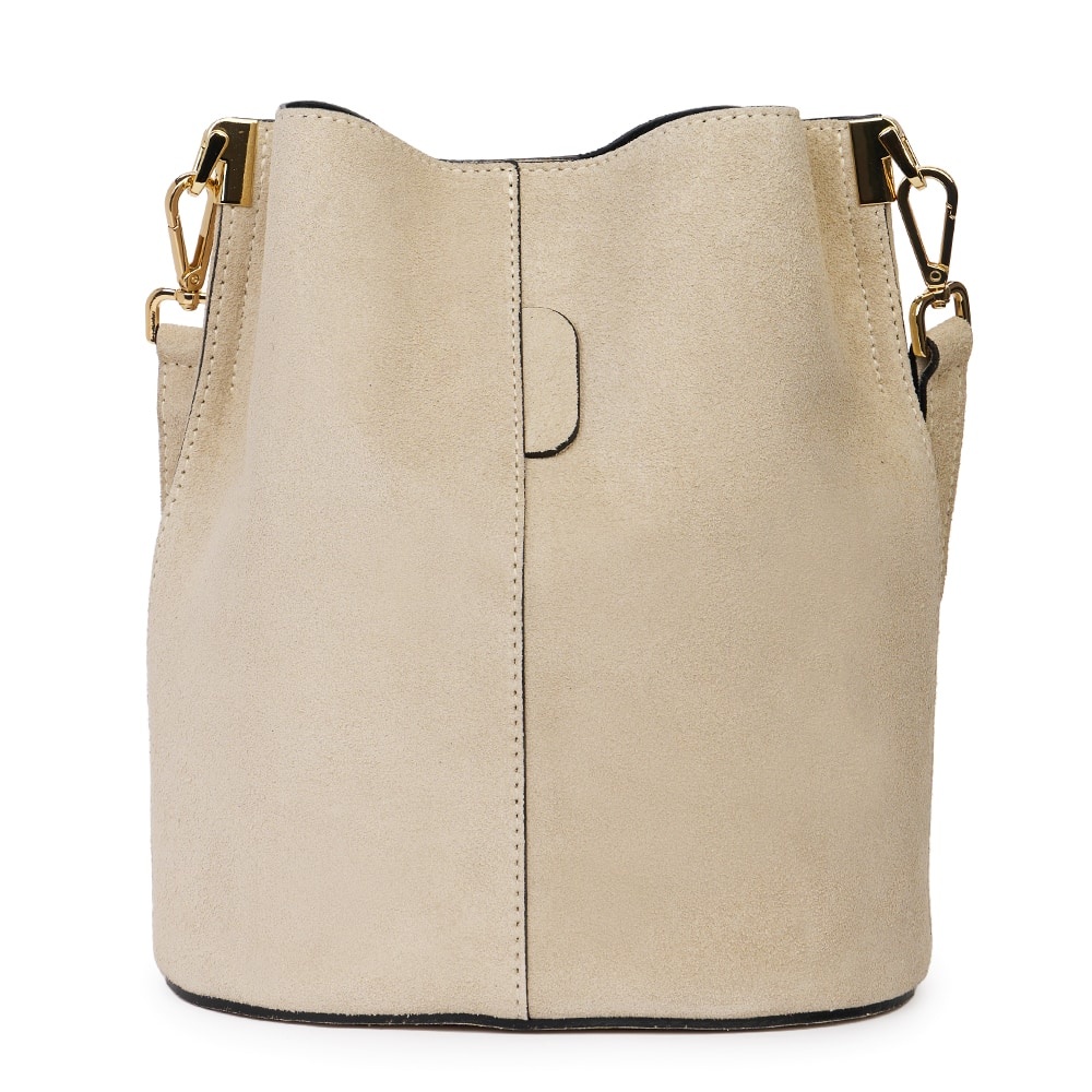 Geanta din piele naturala Milena grej este un accesoriu elegant si versatil, ideal pentru un stil modern, discret. Realizata din piele intoarsa, cu un aspect deosebit de elegant, geanta impresioneaza prin textura fina si finisajele impecabile. Forma sa tip „bucket bag” ofera un spatiu generos pentru obiectele esentiale de zi cu zi, in timp ce sistemul de inchidere sigur si cureaua de umar reglabila asigura confort si functionalitate. MATERIAL: piele naturala DIMENSIUNI (inaltime x lungime x latime): 28x24x17cm COMPARTIMENTE: doua compartimente separate de un buzunar cu fermoar BUZUNARE: fara buzunare SISTEM DE PRINDERE: bretea de umar detasabila scurta (53 cm) + bretea de umar detasabila, reglabila (50-123cm) CULOARE ACCESORII: auriu