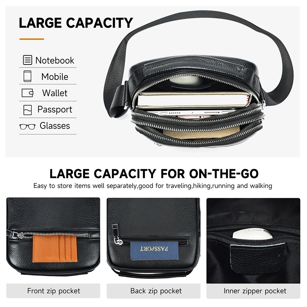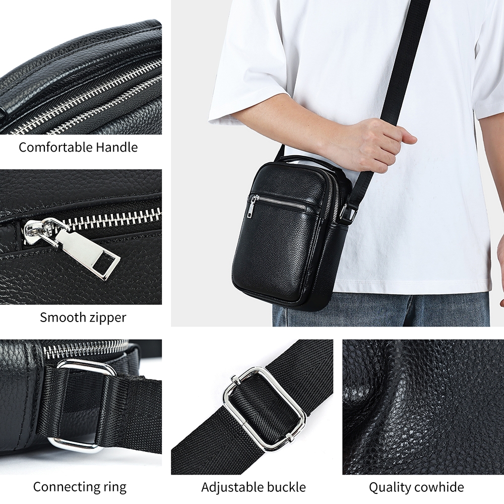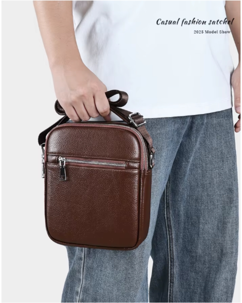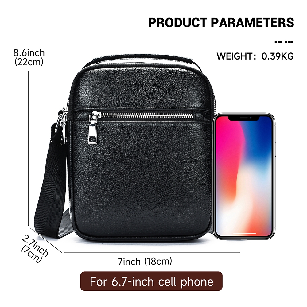 interior captusit; 1 compartiment principal; 1 buzunar interior fara fermoar; 2 buzunare exterioare fata/spate cu fermoar; bareta ajustabila si detasabila (74 - 152 cm); dimensiune: 18 x 7 x 22 cm; greutate: 390 g; material: piele naturala; sistem inchidere: fermoar. Important : Culoarea produsului poate varia ușor datorită luminozității monitorului. Din cauza varietății instrumentelor de măsură, pot exista ușoare erori de cm.