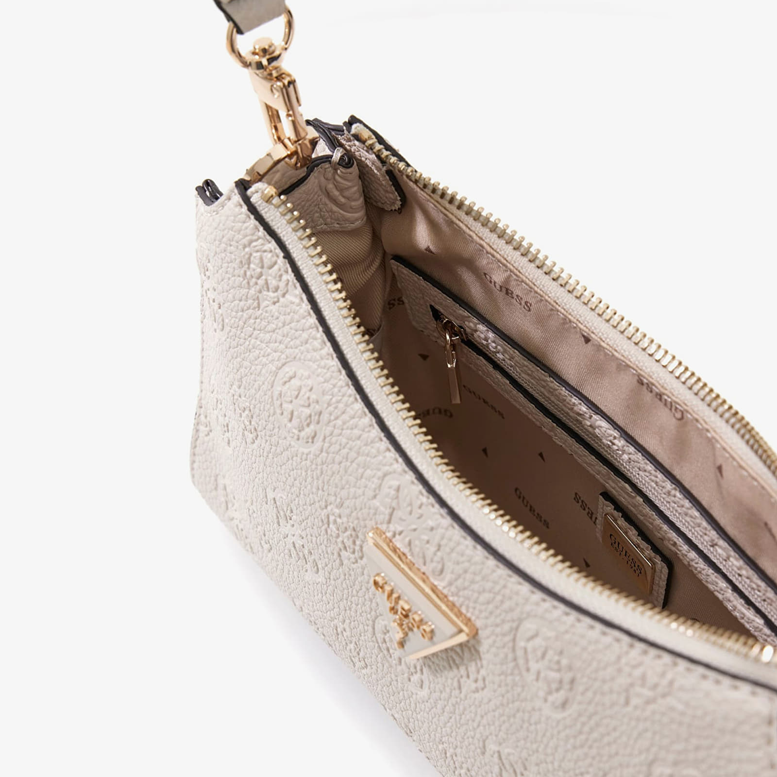 GUESS Cresidia II Top Zip Shoulder Bag Off White Logo Universal