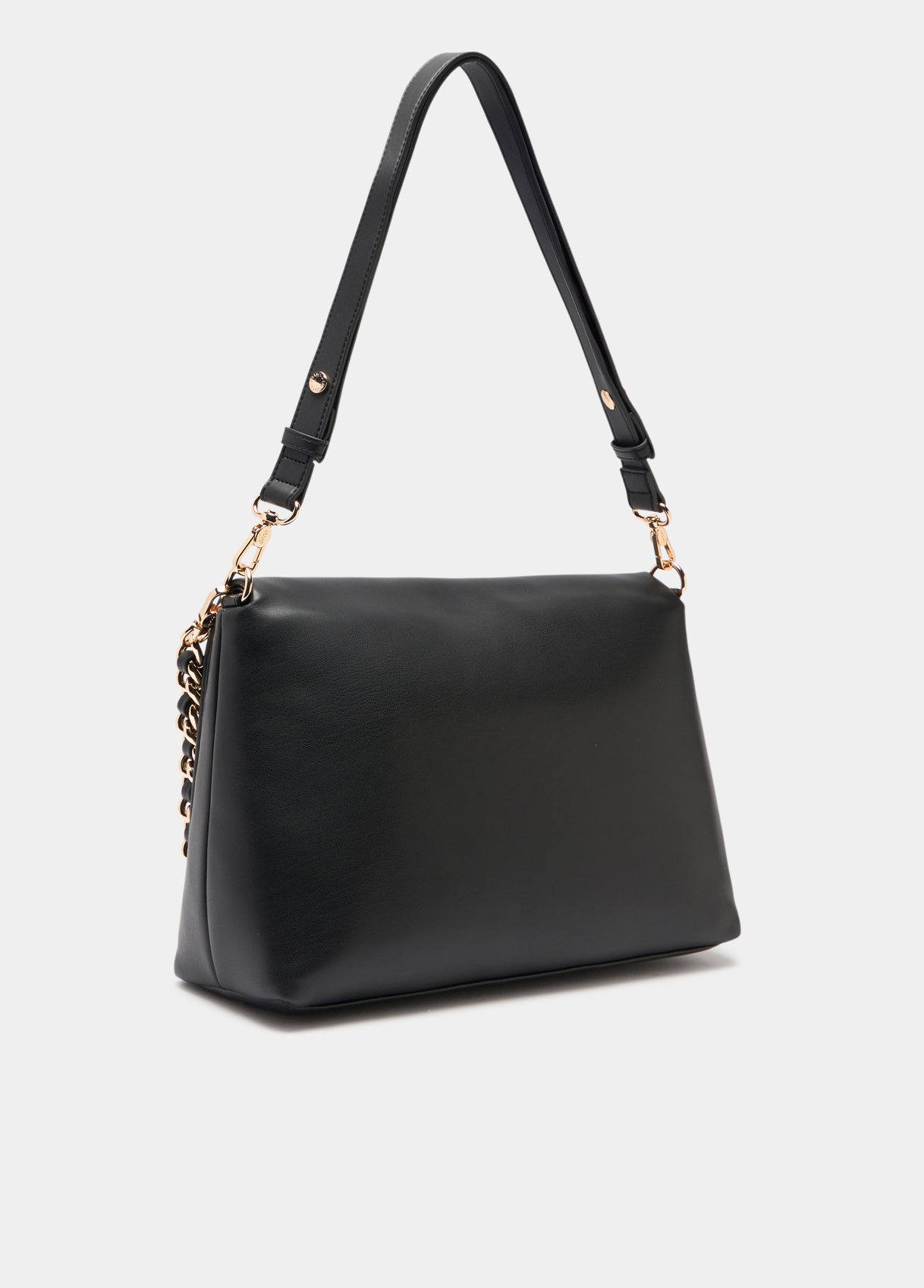 Measurements: 32 x 12 x 22 cm Large black crossbody bag Nappa effect print Handle with braided chain Detachable shoulder strap Metal logo Utility pocket fastened with zip Magnetic button closure Liu Jo Better product