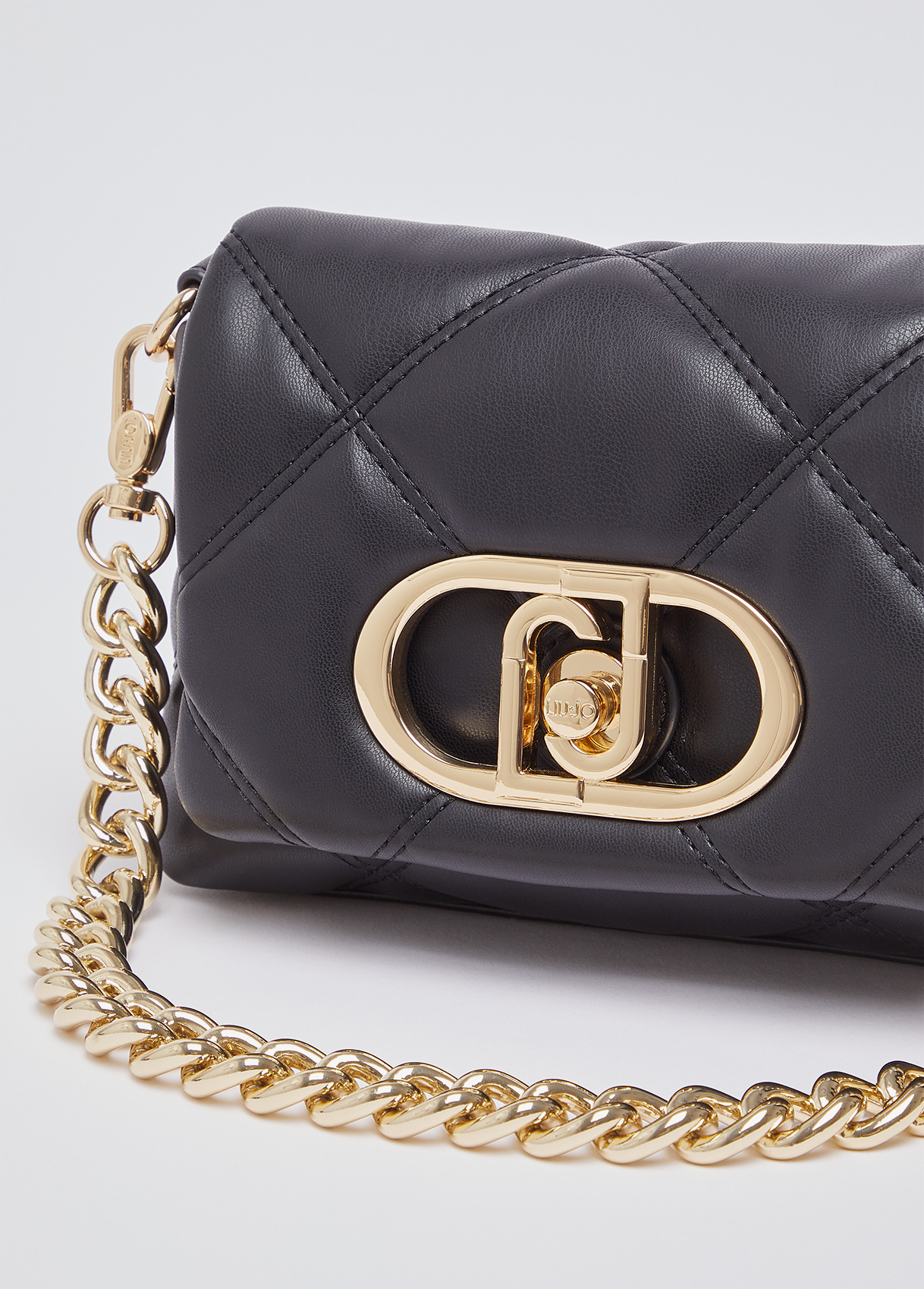 Measurements: 19 x 6 x 13 cm Small shoulder bag Quilted Two detachable shoulder straps Central compartment with utility pockets Metal monogram logo Magnetic button closure Liu Jo Better product