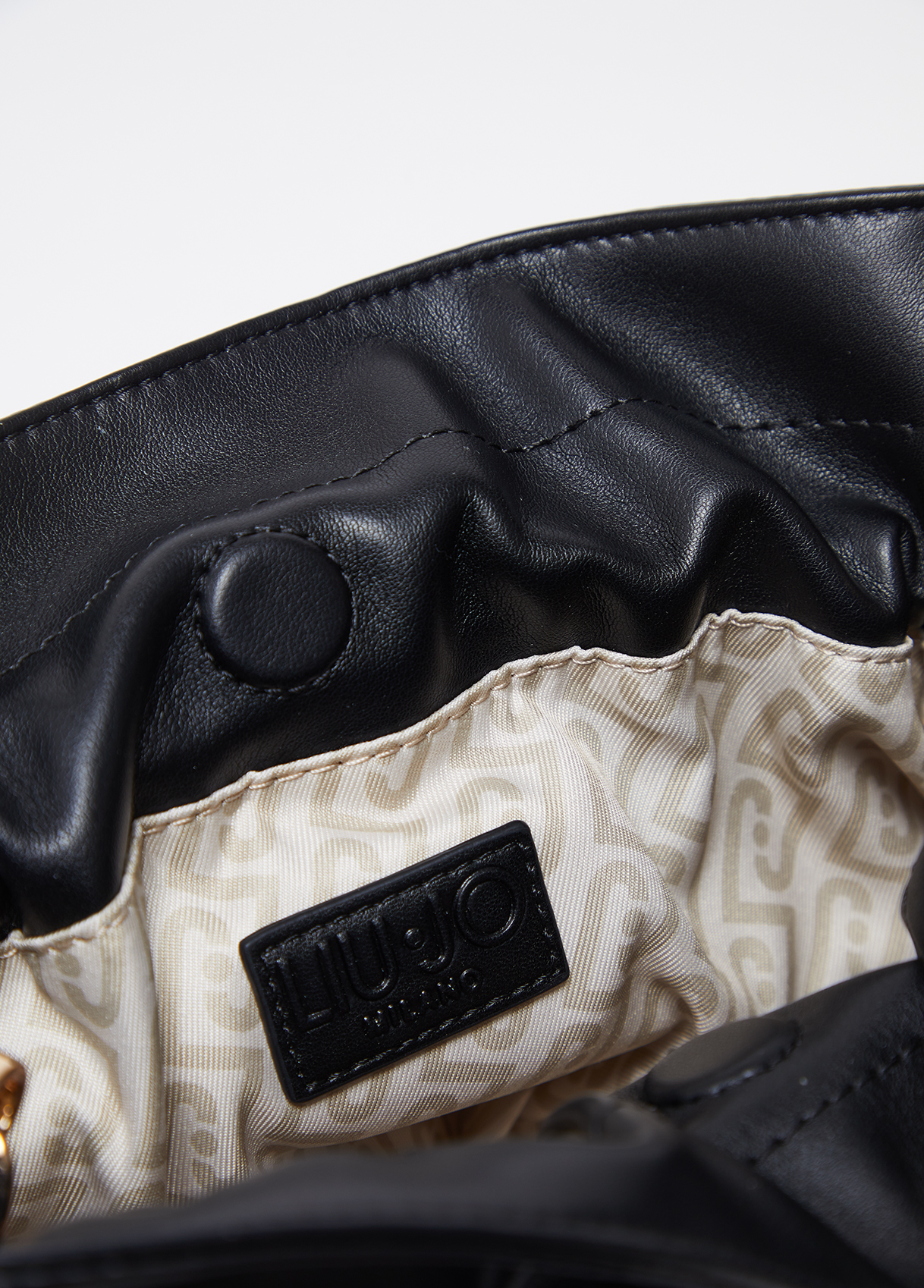 Compact, sculpted, unmistakable. This small Riccy Bag turns softness into a true style statement. Full-bodied volumes gather into a refined drawstring detail, while bold side accents trace the silhouette with almost architectural precision. Perfect also as a crossbody thanks to its removable chain strap. Size: 24 x 9 x 19 cm Medium shoulder bag Logo lettering Logo-lined interior Central compartment Magnetic button and drawstring closure Removable chain strap Liu Jo Better product