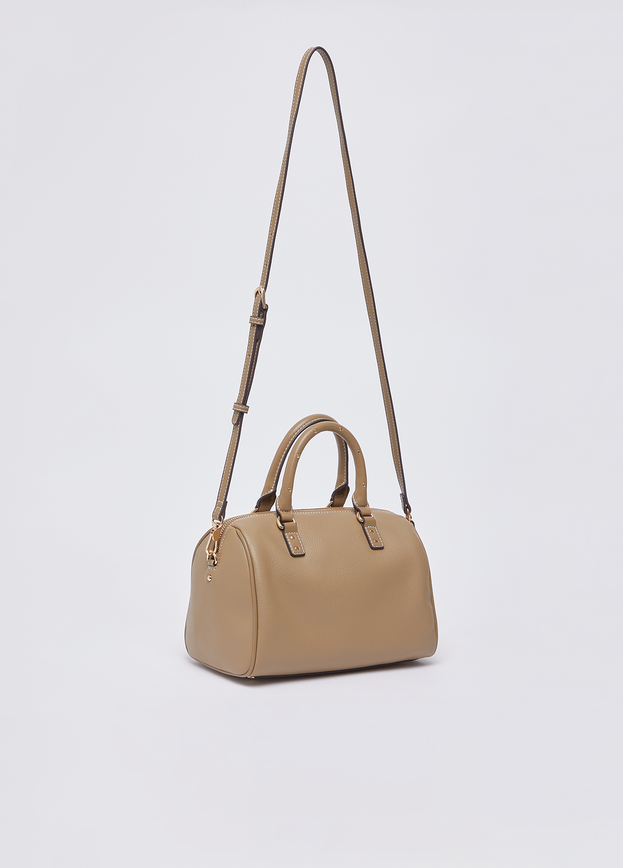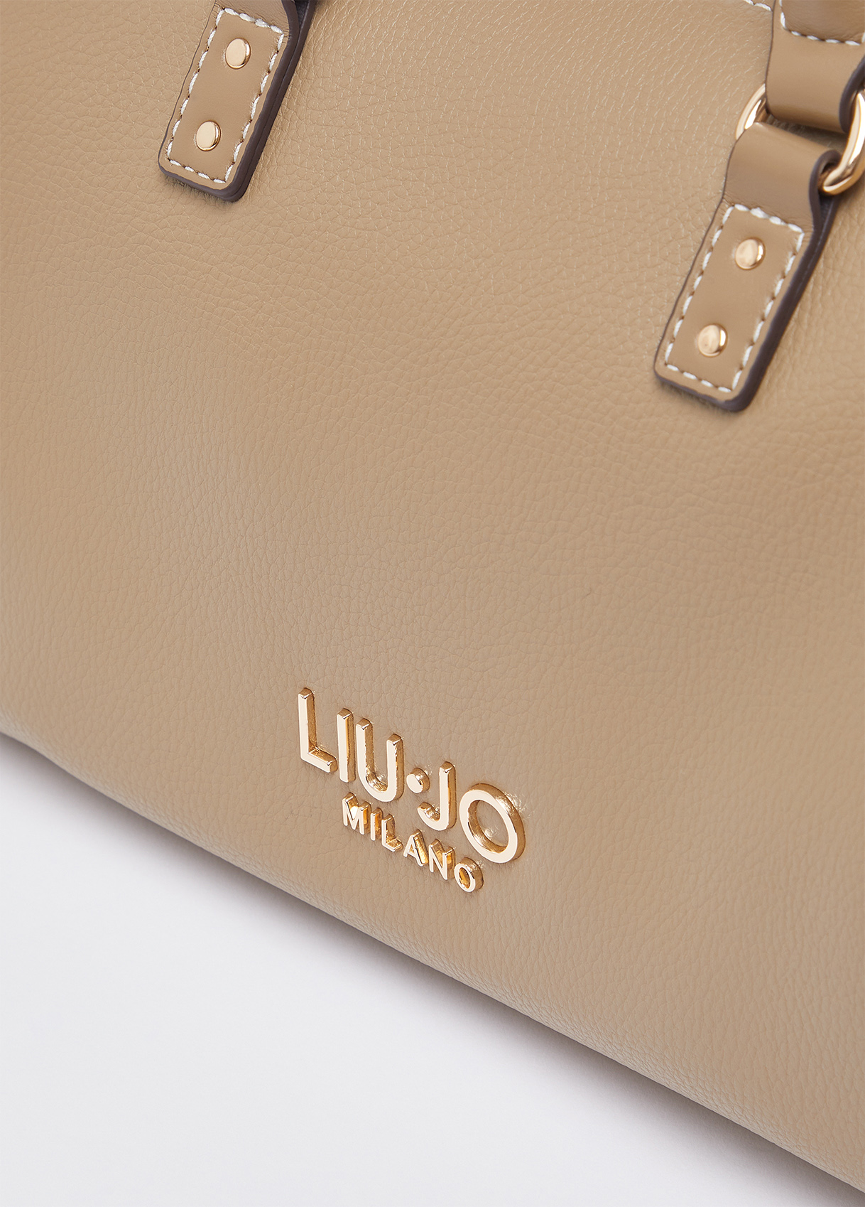 Measurements: 25 x 15 x 17 cm Small mud colour satchel Tumbled effect print Branded lining Central compartment with zip closure Logo lettering Studded handles Matching shoulder strap Liu Jo Better product