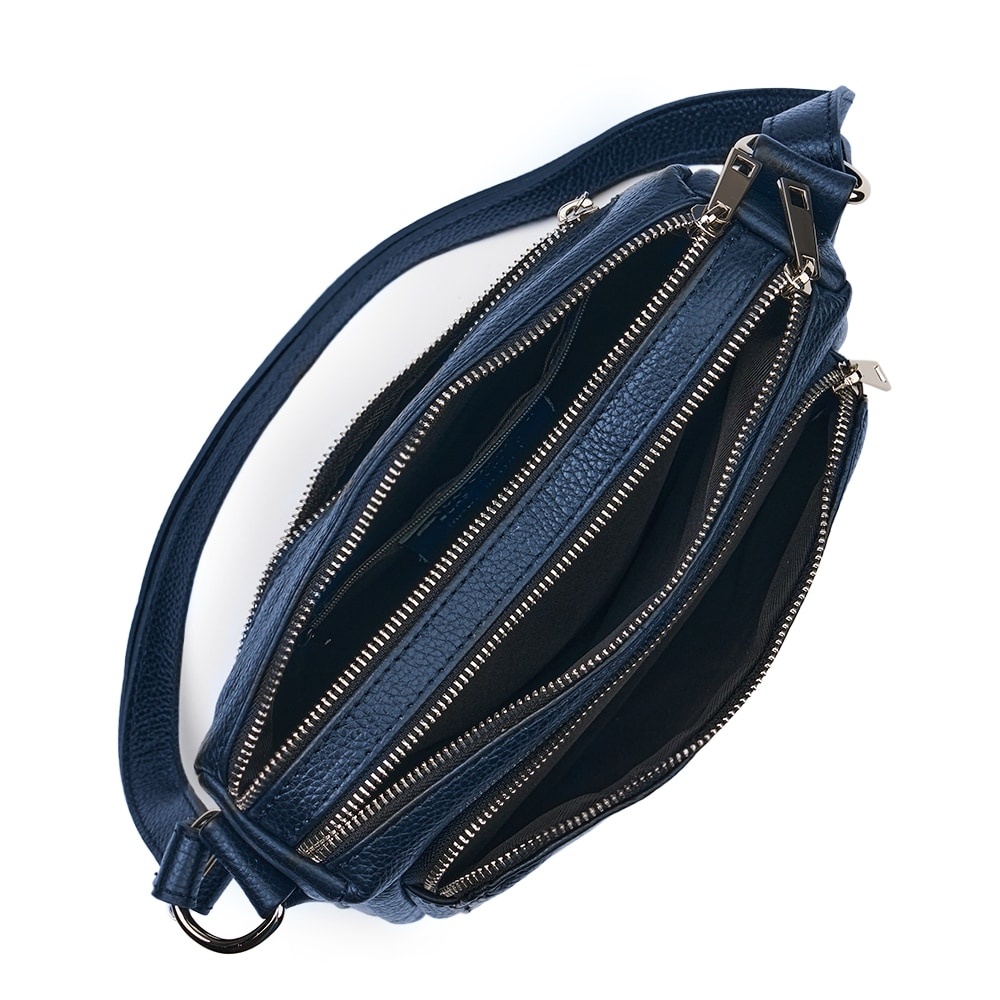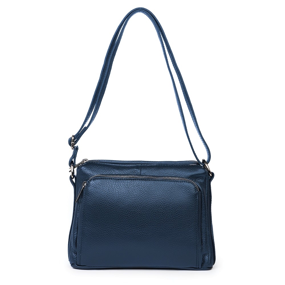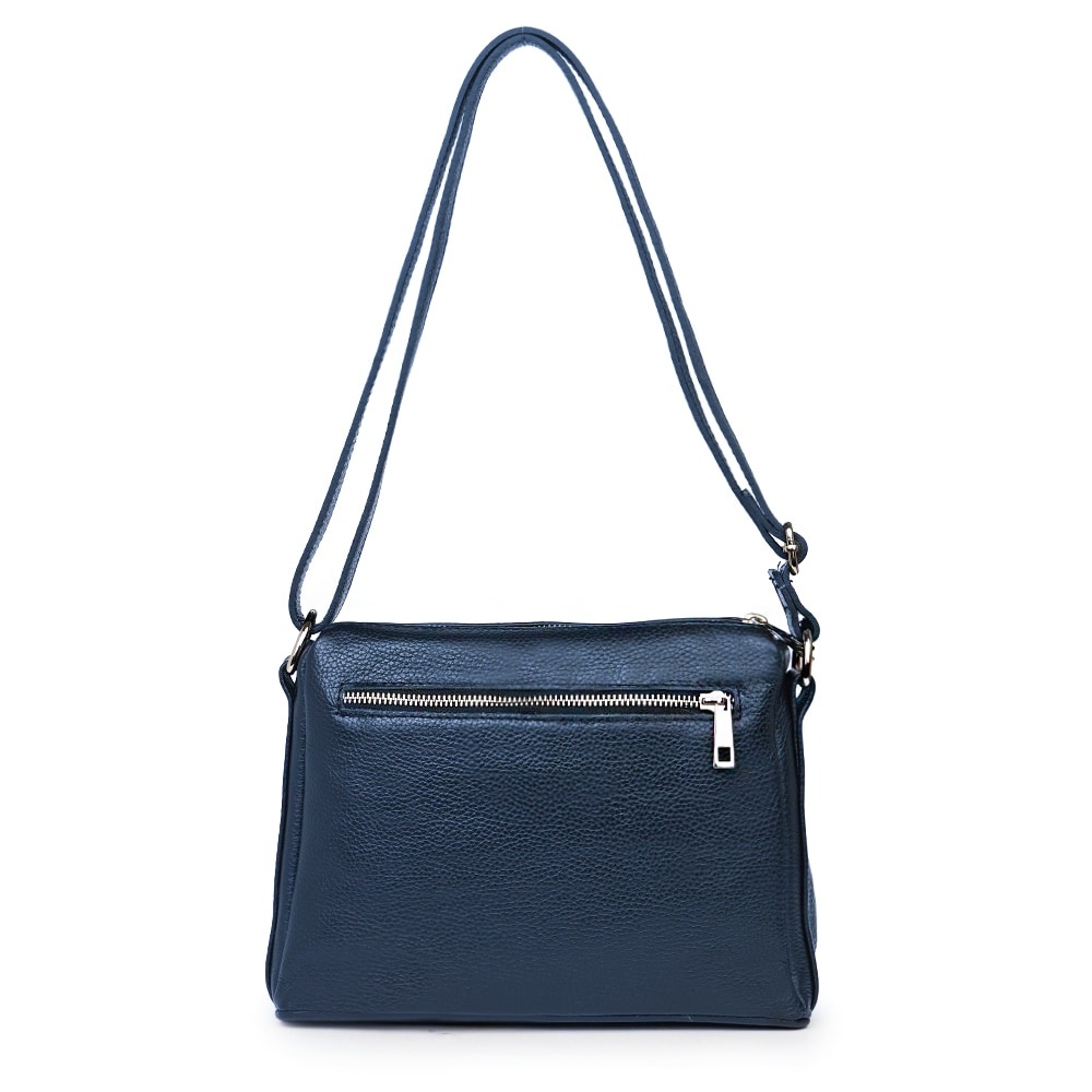 Poseta de dama din piele naturala Vania bleumarin este un model crossbody, ideal pentru un stil de viata activ. Realizata din piele naturala cu textura granulata, ea imbina durabilitatea cu un design minimalist si modern. Cele doua compartimente principale, inchise individual cu fermoare metalice, permit o organizare impecabila a obiectelor personale. Buzunarul frontal exterior adauga un plus de practicalitate, fiind ideal pentru acces rapid la telefon sau chei. Bareta lata din piele asigura un confort sporit pe umar, facand-o potrivita pentru purtarea zilnica. Este o piesa versatila, usor de integrat in tinute office sau casual, oferind o nota de rafinament discret oricarei aparitii. MATERIAL: piele naturala DIMENSIUNI (inaltime x lungime x latime): 20 x 27 x 10cm COMPARTIMENTE: doua compartimente separate BUZUNARE: buzunar exterior cu fermoar pe partea din spate, buzunar exterior mare cu fermoar pe partea din fata, buzunar interior fara fermoar SISTEM DE PRINDERE: bretea de umar reglabila, 60-130cm CULOARE ACCESORII: argintiu