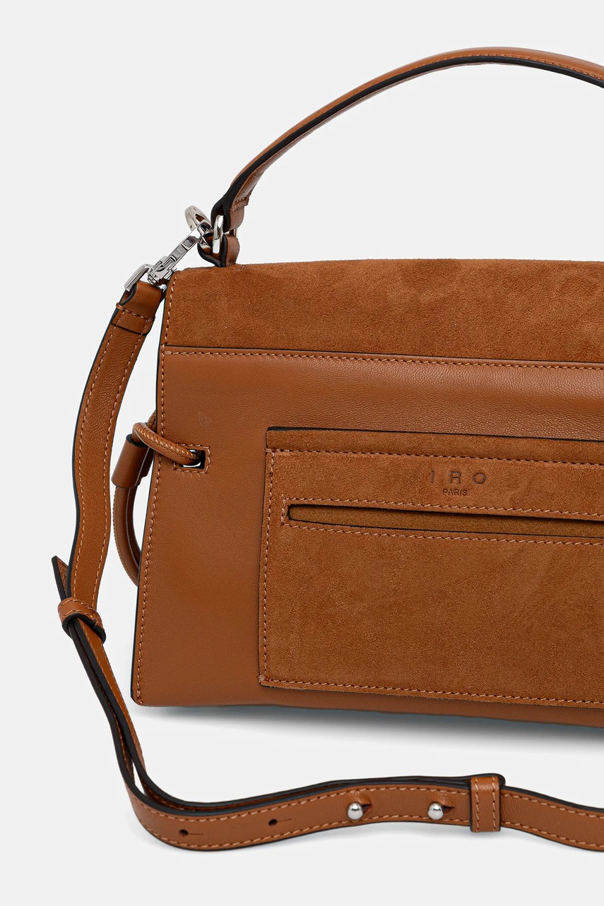 Poșetă mică din colecția IRO. Model cu fixare confecționat din piele întoarsă.