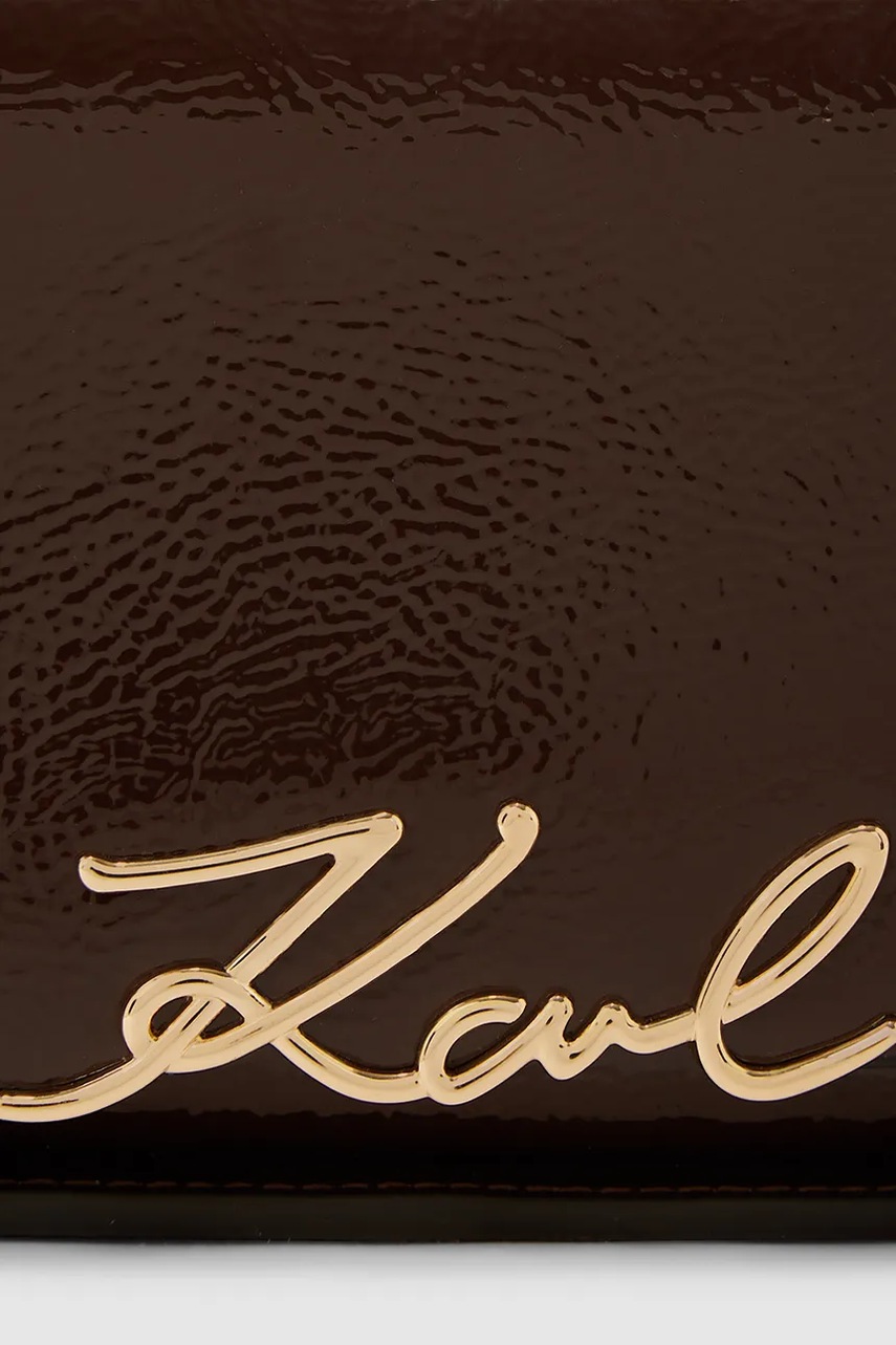 Poșetă mică din colecția Karl Lagerfeld. Model cu fixare confecționat din piele lacuită.