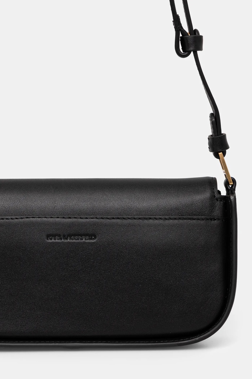 Karl Lagerfeld Geantă de umăr neagră din piele netedă, curea reglabilă, închidere magnetică, imprimeu monocrom, dimensiune mică, crossbody