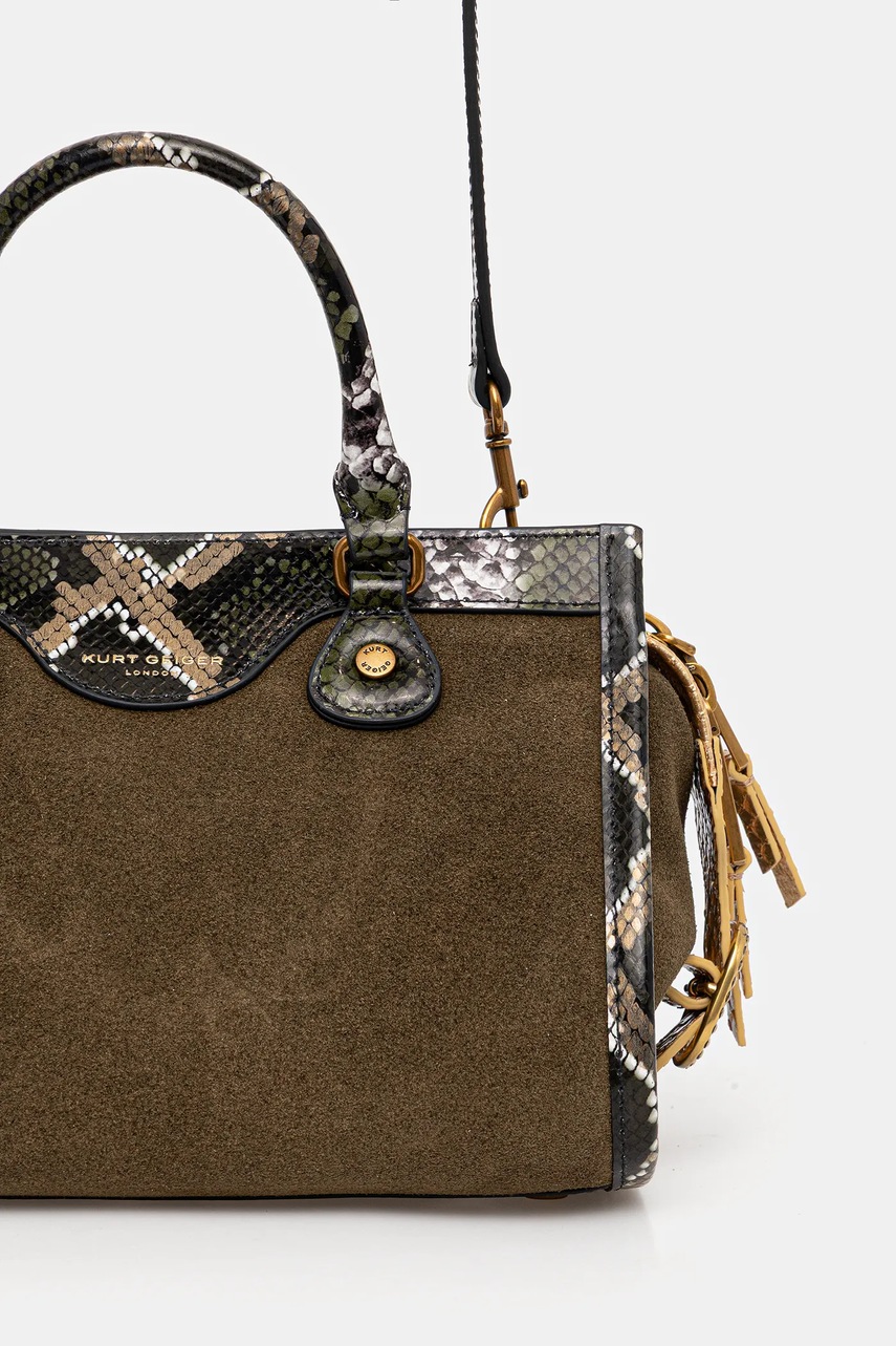 Poșetă de mărime medie din colecția Kurt Geiger London. Model cu nasturi model confecționat din combinație de piele întoarsă și piele naturală.