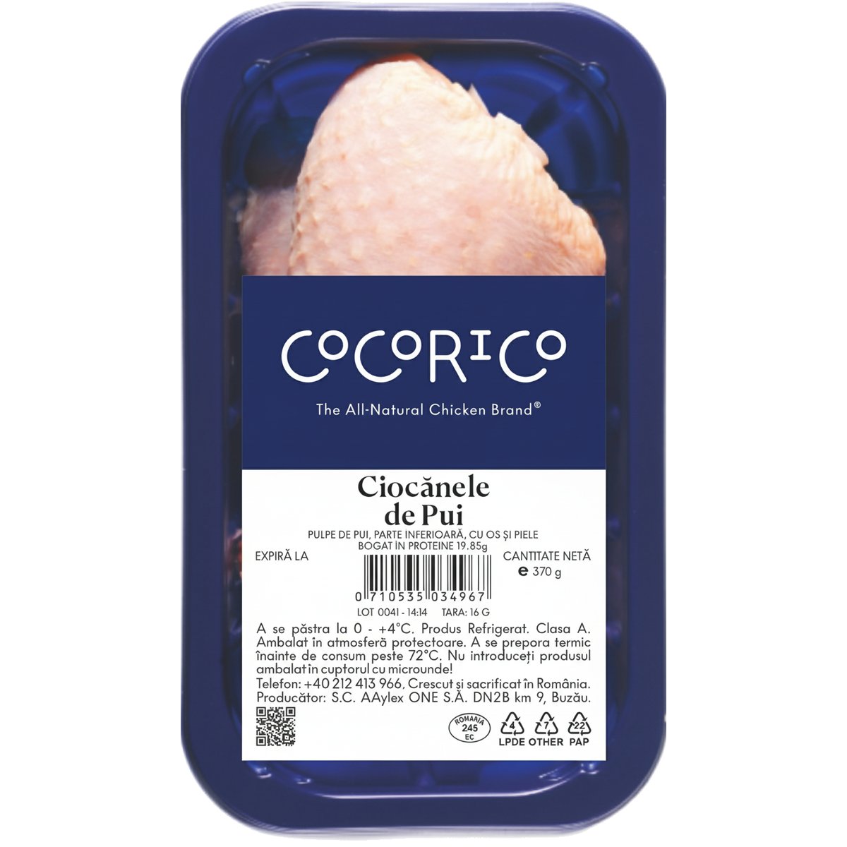 Produsul se realizeaza din pulpa inferioara de pui cu os si piele de pui broiler obtinuta prin transarea carcaselor de pui clasa A, conform STAS 7031/2008 si cuprinde pulpa intreaga si se sectioneaza la nivelul ligamentului femuro-tibial, obtinandu-se pulpa inferioara. pulpele rezultate se fasoneaza de franjuri, ramanand musculatura, grasimea, tendoanele si pielea in aderenta naturala. Produsul se realizeaza din pui carcasa clasa A prelucrat conform STAS 7031/2008. Pentru admitere in clasa A carcasele trebuie sa fie intacte ; curate, fara sa prezinte nici o urma de corpuri straine, de murdarie sau de sange ; sa nu prezinte nici un miros strain ; sa nu prezinte fracturi deschise, echimoze grave. Pentru admitere exclusiv in clasa A, avem urmatoarele conditii: carcasa integra, conformatie buna, carne ferma, piept si picioare bine dezvoltate si carnoase ; cateva pene mici, tuleie (capete de pene) si puf (pene subtiri) sunt tolerate ; leziunile , echimozele si decolorarile sunt admise numai in numar mic, daca au dimensiuni reduse si sunt slab perceptibile si daca nu afecteaza pieptul si picioarele.