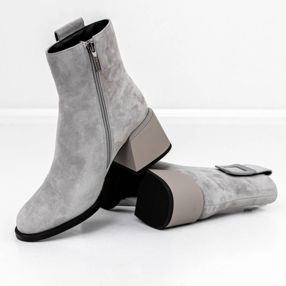 Botine Dama cu toc gros K05-55-A25C Gri Jose Simon