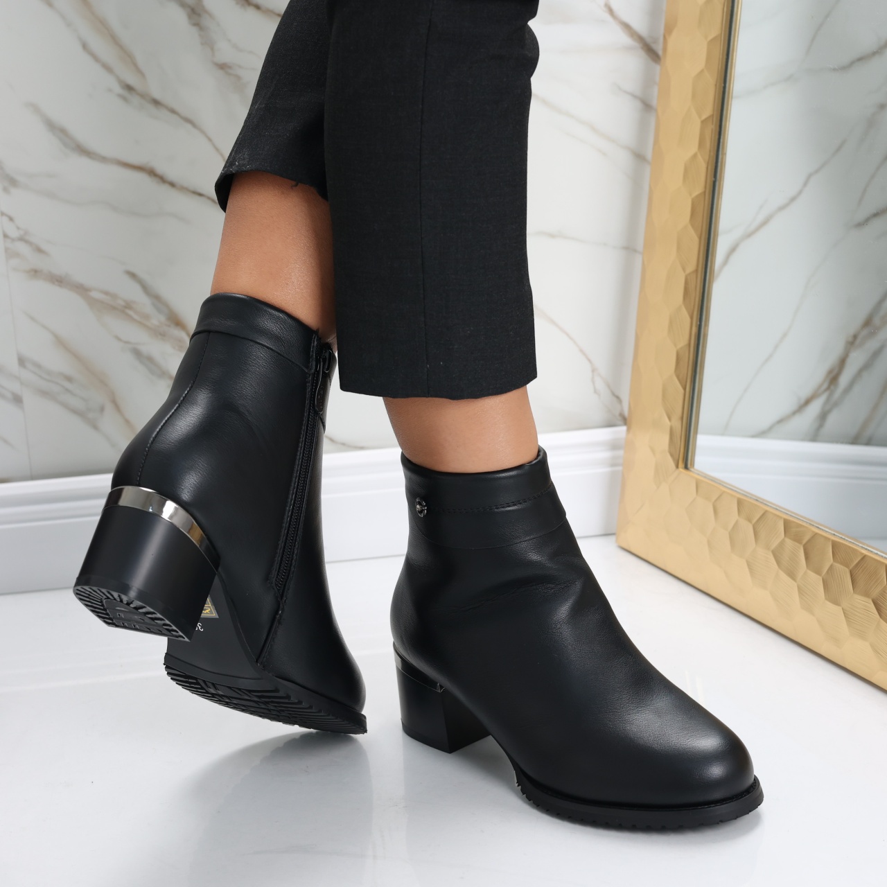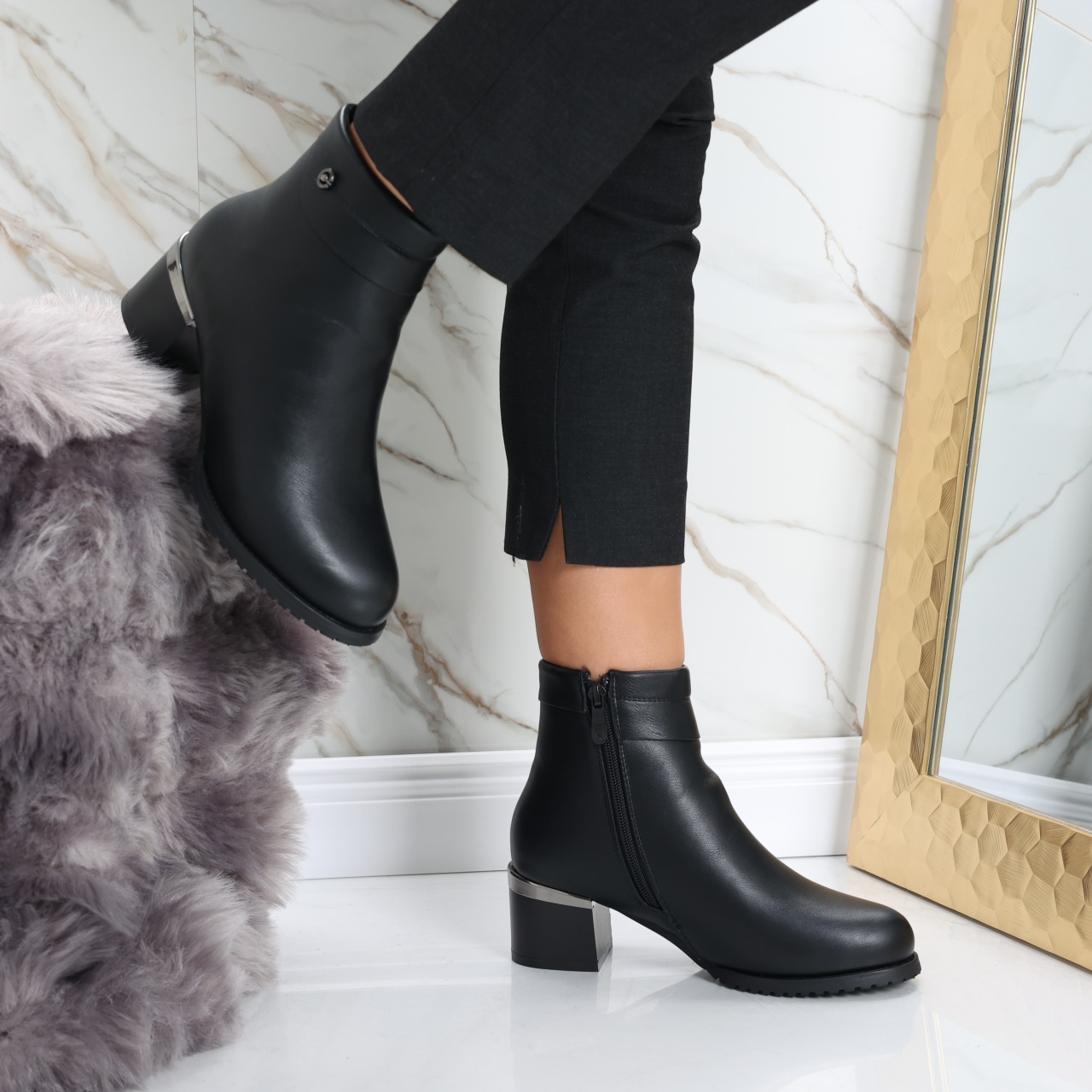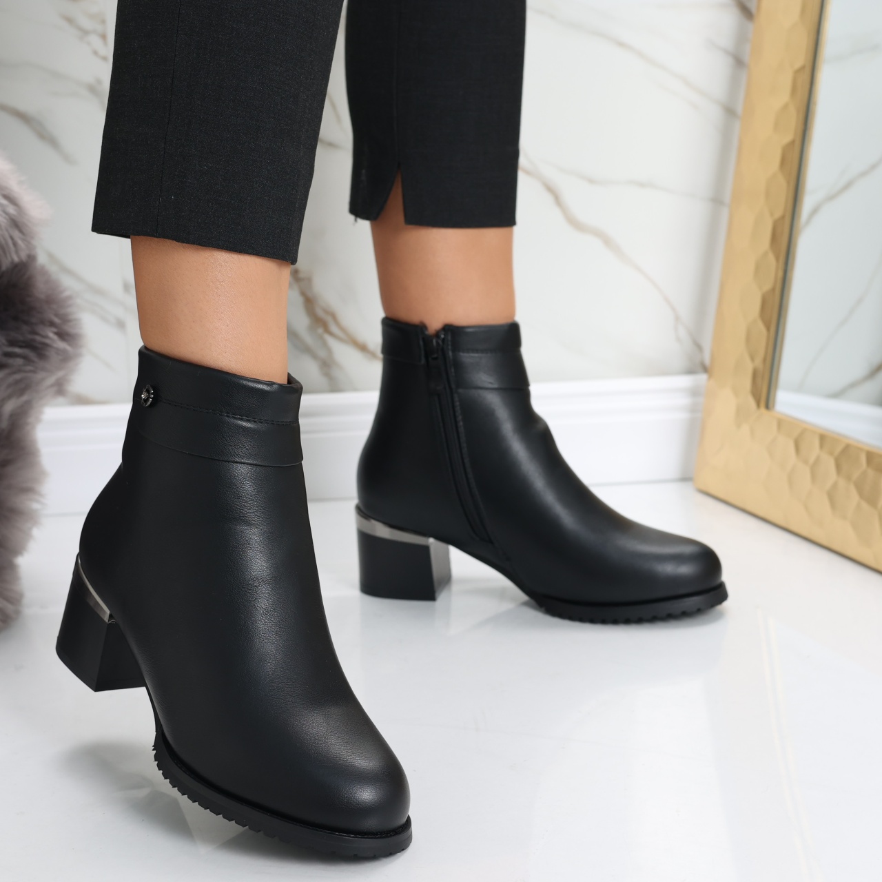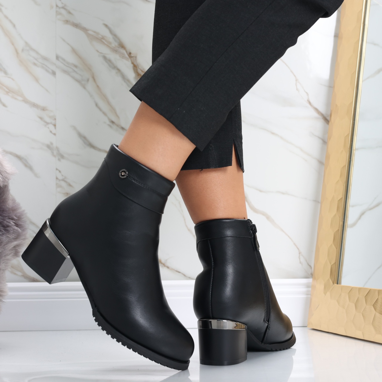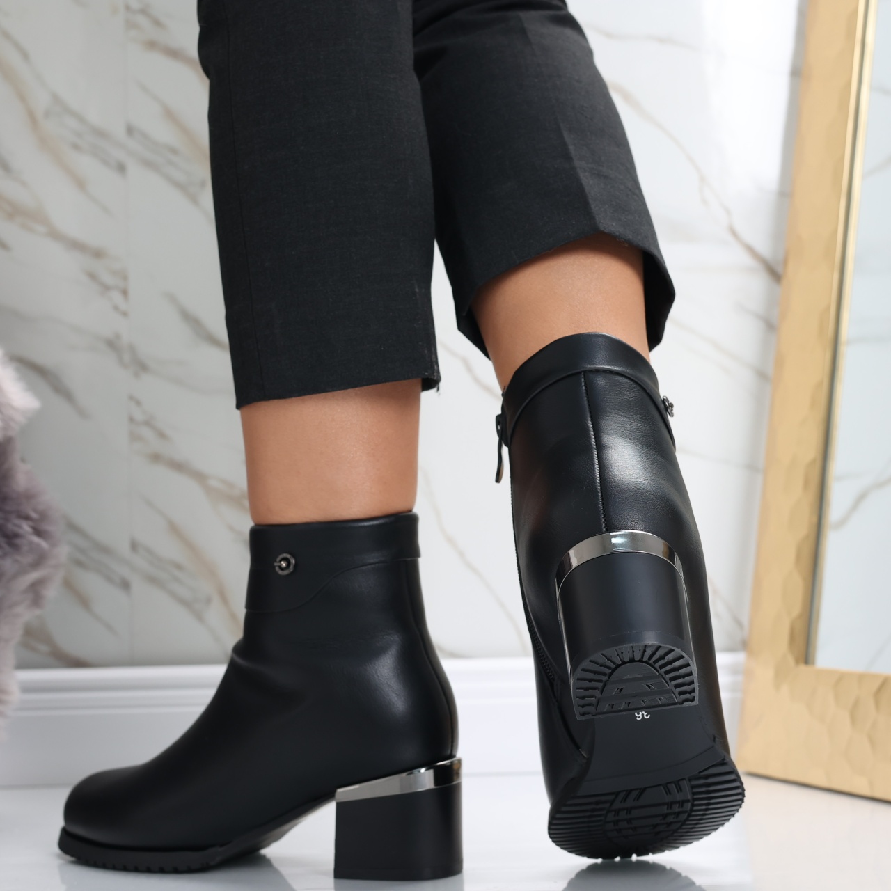 Îndrăznește să îți redefinești stilul cu botinele imblănite Ainoma, partenerul ideal pentru femeile care doresc să strălucească prin eleganță și confort! Construite din piele ecologică de înaltă calitate, aceste botine negre nu doar că îți oferă o căldură plăcută în zilele reci, dar adaugă și o notă rafinată oricărei ținute. Cu un toc de 5 cm, vei păși cu încredere și grație, perfect echilibrat între stil și comoditate, fiind ideal chiar și pentru o zi întreagă de activități. Designul cu vârf rotund maximizează confortul, iar versatilitatea culorii negre le face ușor de asortat cu rochii fine sau outfituri mai casual cu blugi. Alege botinele Ainoma și transformă fiecare pas într-o declarație de stil și încredere, captând privirile tuturor, indiferent de ocazie. Nu mai aștepta, adaugă un plus de sofisticare garderobei tale chiar astăzi!