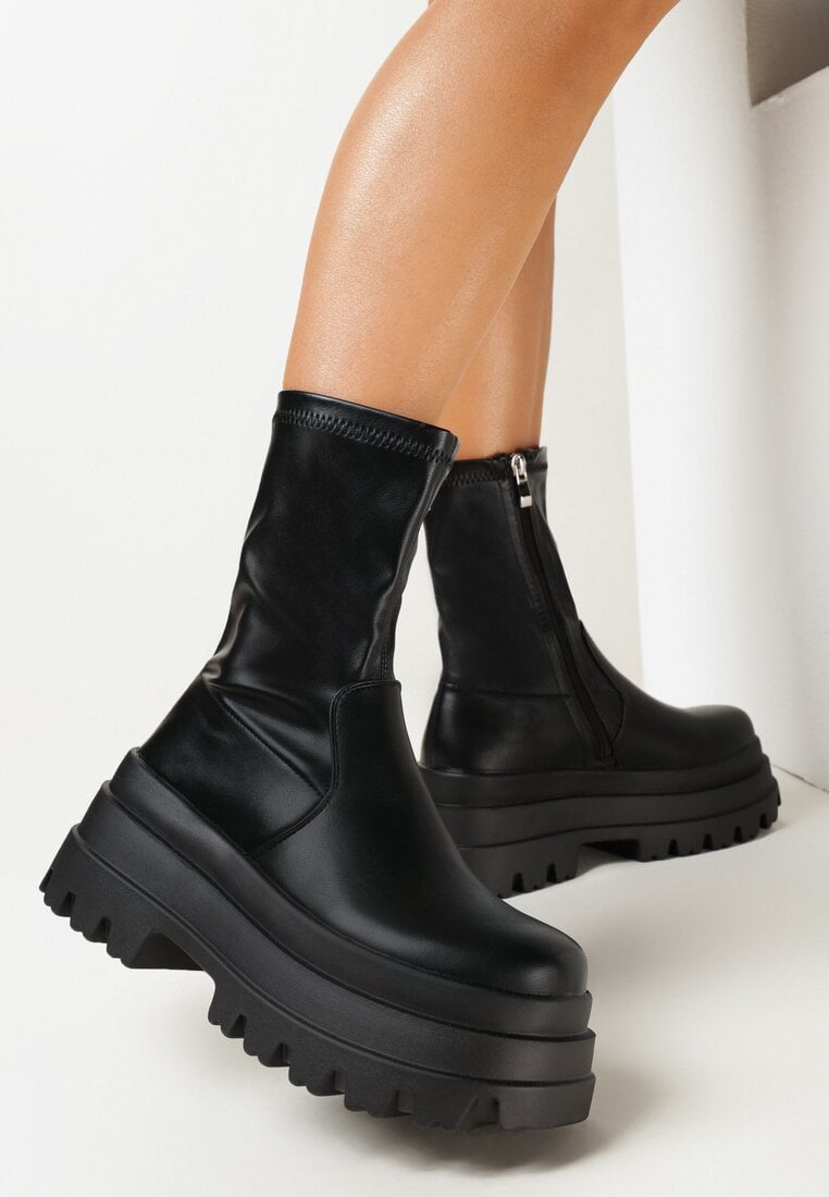Botine Negre pe Platformă Masivă stil Worker Elrora