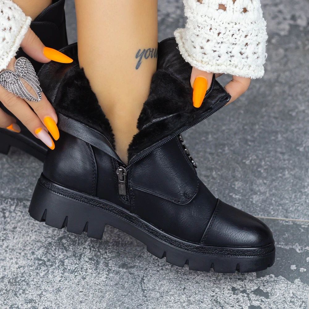 Pentru orice informatii nu ezita sa ne contactezi pe Facebook Messenger sau la 0314335400Culoare: NegruMaterial exterior: piele ecologicaMaterial interior: imblanitVarf: rotundMaterial talpa: cauciucInaltime talpa: 5.5 cmInchidere:fermoarInformatii livrare:Oferim TRANSPORT GRATUIT in toata tara la ORICE COMANDA de minim 300 lei.Livrarea se face prin firma de curierat rapid dupa cum urmeaza:- in Bucuresti si Ilfov: in termen de 1-2 zile lucratoare de la plasarea comenzii; cost 18 lei- in provincie: in termen de 1-3 zile lucratoare de la plasarea comenzii; cost 18 leiComenzile se proceseaza intre orele 06:00-18:00 de luni pana vineri, in ordinea venirii lor.Imediat ce comanda dvs. este procesata, veti primi un SMS cu informatii despre totalul de plata si link-ul de urmarire AWB precum si o notificare pe adresa de email folosita in comanda.