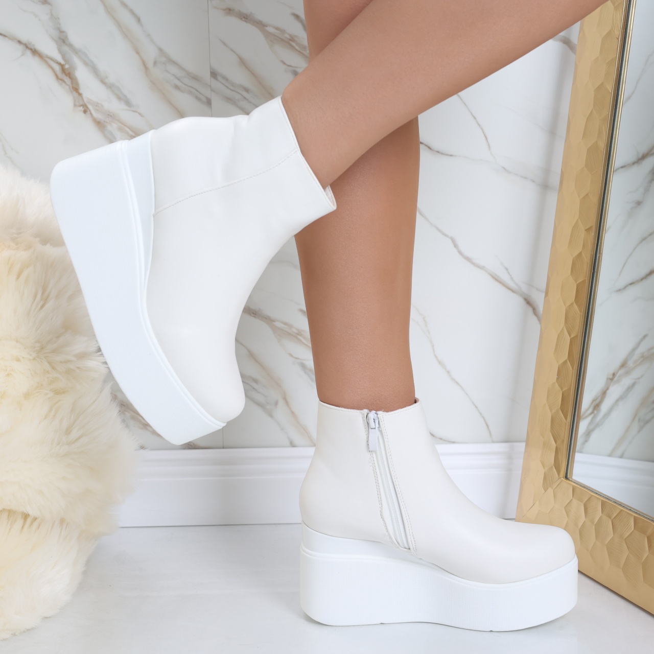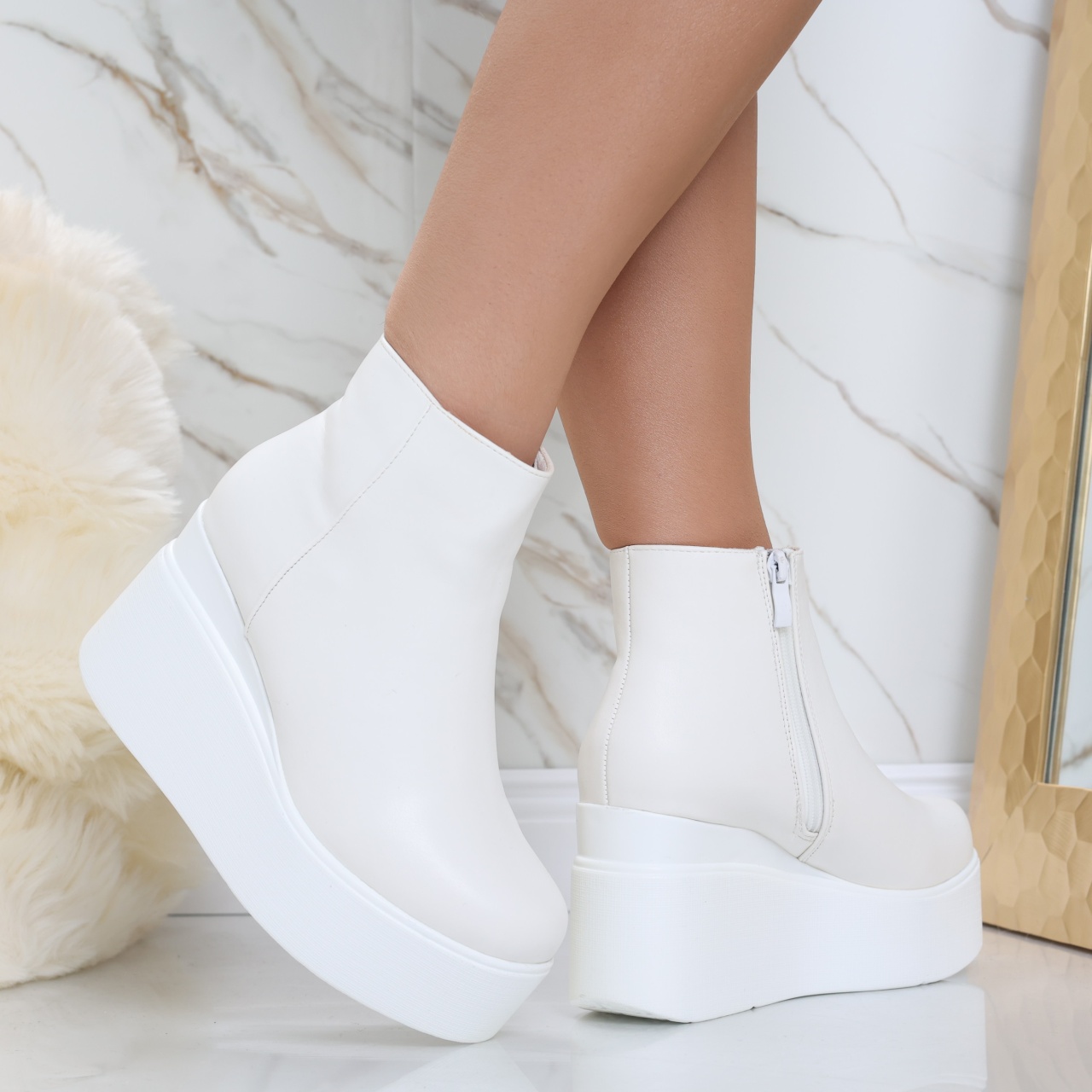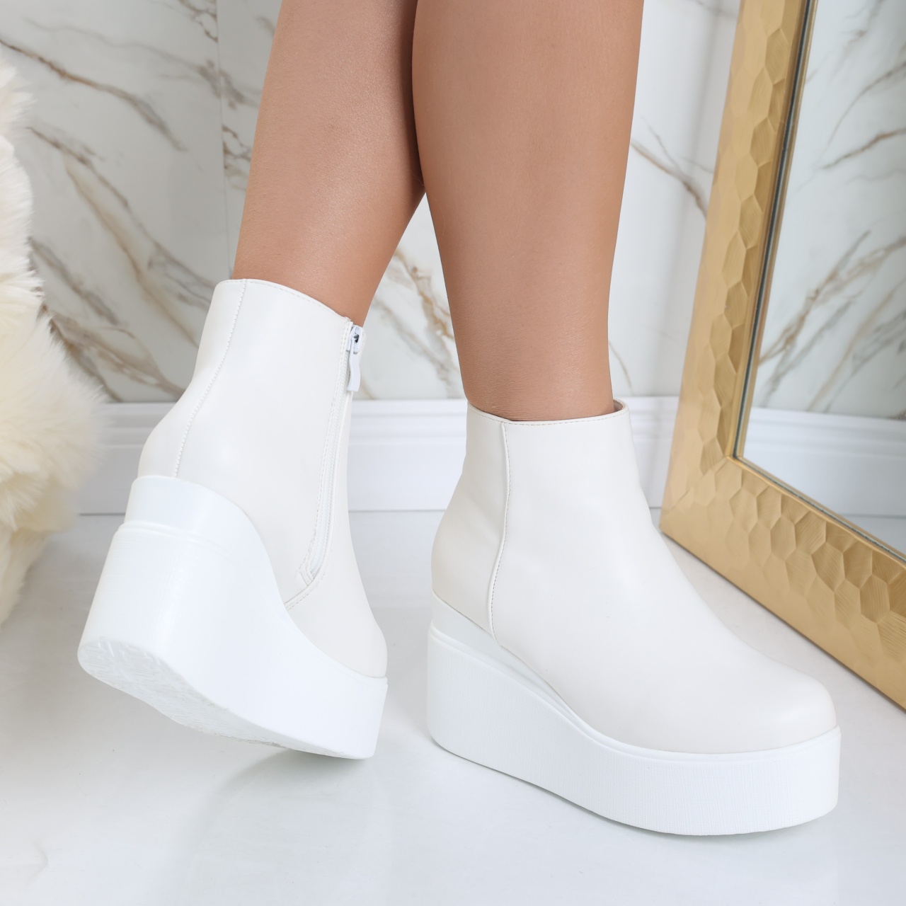 Concepute pentru femeile care doresc să fie trendy și confortabile în același timp. Realizate din piele ecologică de înaltă calitate, aceste ghete negre nu doar că oferă un aspect elegant, ci și un interior căptușit care te menține caldă și confortabilă pe parcursul întregii zile. Cu o platformă spate de 9 cm și o platformă față de 4 cm, ghetele Razina îți oferă un avantaj de înălțime fără a compromite confortul în mers, făcându-le ideale pentru utilizarea zilnică. Culoarea alba le face extrem de versatile, permițându-ți să le asortezi cu ușurință la diverse ținute. Fie că alegi un outfit casual cu blugi și un pulover, sau preferi un look mai elegant, cu o rochie sau o fustă, ghetele Razina se potrivesc perfect în orice combinație. Vârful rotund adaugă nu doar un detaliu modern, ci și un plus de confort, oferindu-ți libertatea de mișcare în fiecare pas. Investește în ghetele imblănite din piele ecologică Razina pentru o experiență stilată și confortabilă. Fiecare pas te va face să te simți încrezătoare, gata să cucerești ziua cu un look impecabil.