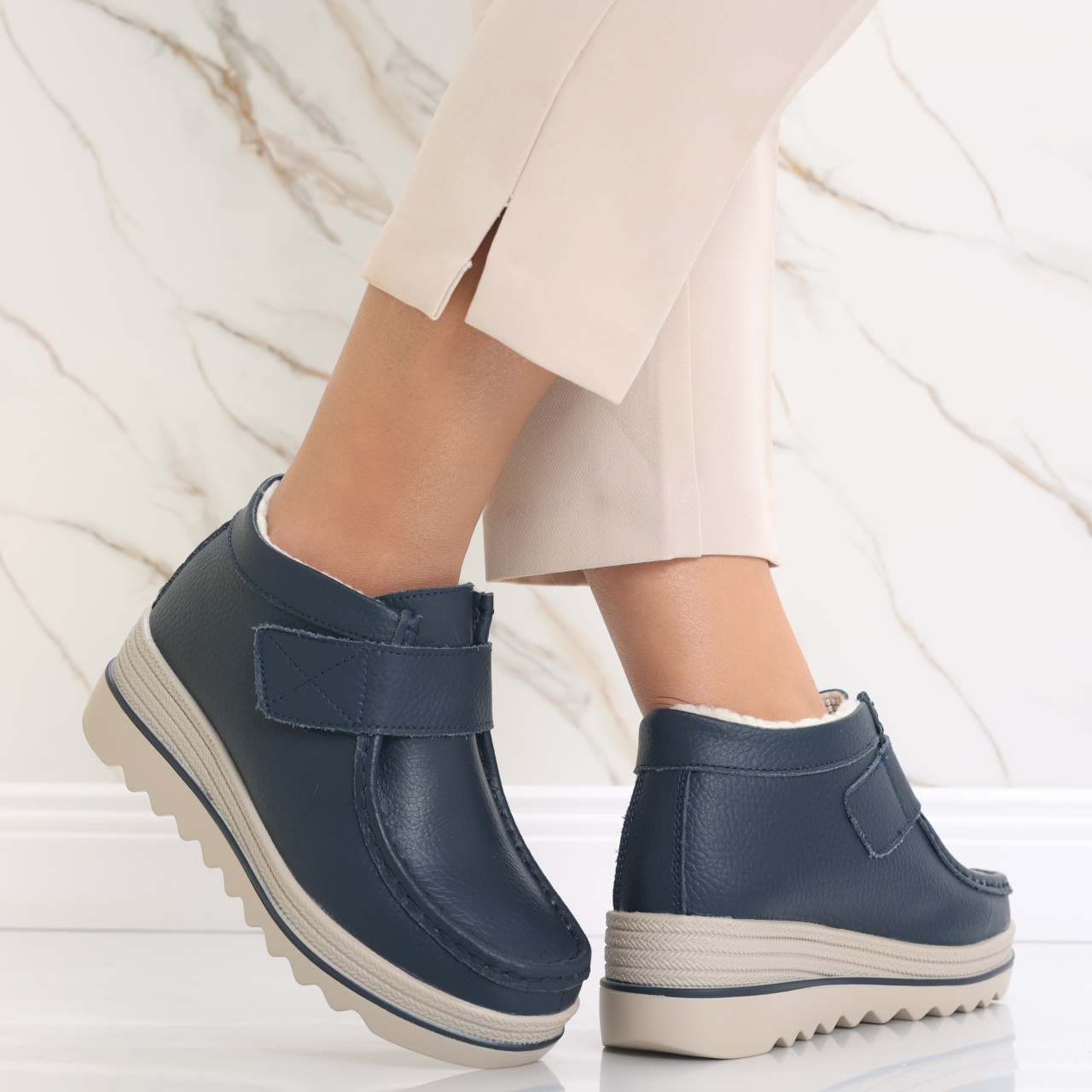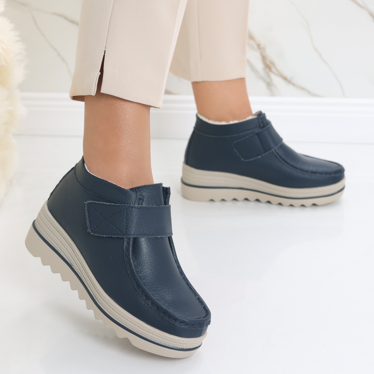 Ghete dama Imblanite Bluemarin din Piele Naturala Tanela