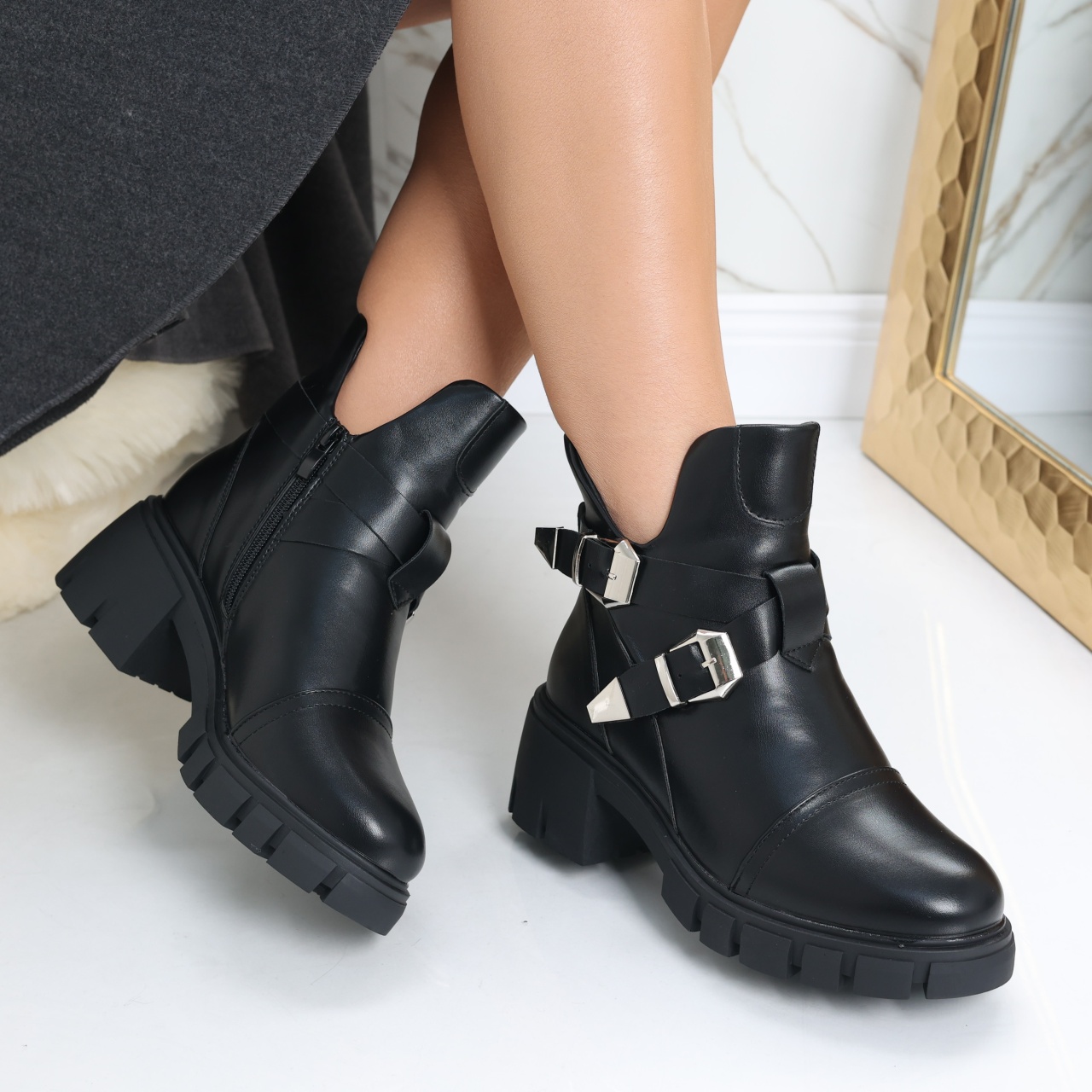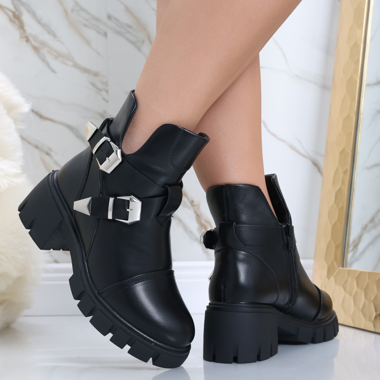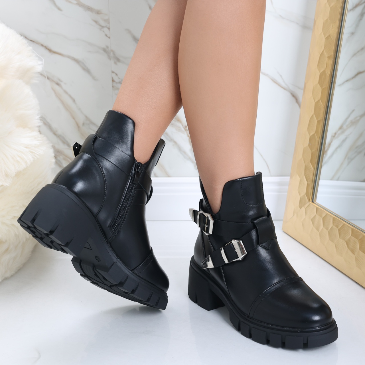 Designul modern și vârful rotund fac din aceste ghete un element versatil, ideal pentru toate ocaziile. Poți crea o ținută casual cu o pereche de blugi și un pulover, sau poți adăuga un strop de eleganță cu o rochie sau o fustă. Culoarea neagră îți va permite să le asortezi cu ușurință la orice outfit, făcându-le o alegere excelentă pentru orice sezon. Alege ghetele imblănite din piele ecologică Acuda pentru a te bucura de un confort de lungă durată și un stil impecabil. Fiecare pas te va face să te simți încrezătoare, elegantă și pregătită să înfrunți provocările zilei cu stil. Transformă-ți garderoba de toamnă-iarnă cu ghetele imblănite Acuda, special concepute pentru femeile care doresc să îmbine stilul trendy cu confortul absolut. Fabricate din piele ecologică de calitate superioară, aceste ghete negre nu doar că arată elegant, dar te vor menține și caldă în zilele reci datorită interiorului căptușit. Cu o înălțime a tocului de 6 cm și o platformă de 2.5 cm, ghetele Acuda îți oferă un look rafinat, fără a sacrifica confortul pe care îl aștepți de la încălțămintea ta.