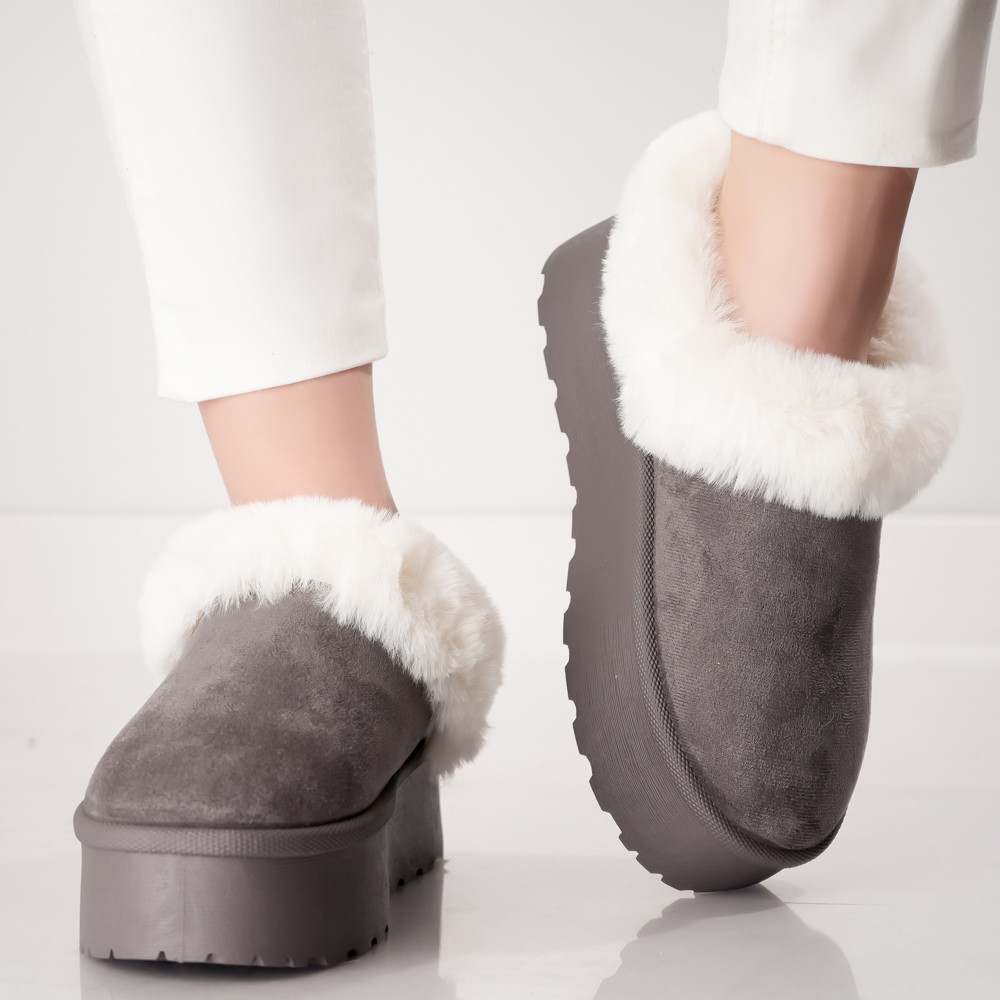 Descoperă eleganța și confortul într-un singur produs cu Mocasinii Dama Imblaniti Gri din Piele Ecologică Intoarsă Hamima. Acești mocasini sunt alegerea ideală pentru a-ți menține picioarele călduroase și pentru a adăuga un strop de stil garderobei tale de iarnă. Mocasinii Hamima se remarcă prin designul lor clasic, cu un vârf rotund care oferă un aspect versatil și potrivit pentru diverse ocazii. Cu o talpă cu înălțimea de 5 cm, acești mocasini adaugă confort și înălțime în fiecare pas. Fabricați din piele ecologică intoarsă de înaltă calitate și cu un interior imblanit, acești mocasini îți vor oferi căldura și confortul necesare în zilele reci de iarnă. Culoarea gri conferă acestor mocasini un aspect elegant și modern, perfect pentru a completa o gamă variată de ținute, de la blugi și pulovere până la rochii și jachete. Completează-ți garderoba de iarnă cu stil și versatilitate alegând Mocasinii Dama Imblaniti Gri din Piele Ecologică Intoarsă Hamima de la ModaStil. Comandă-i acum pentru a te bucura de un look modern și atrăgător în fiecare zi.