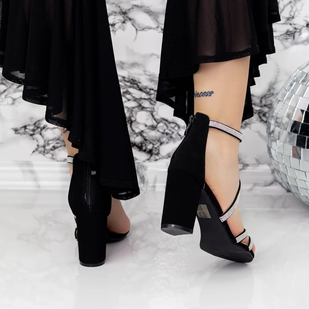 Sandale Dama cu Toc gros 2RG17 Negru MeI