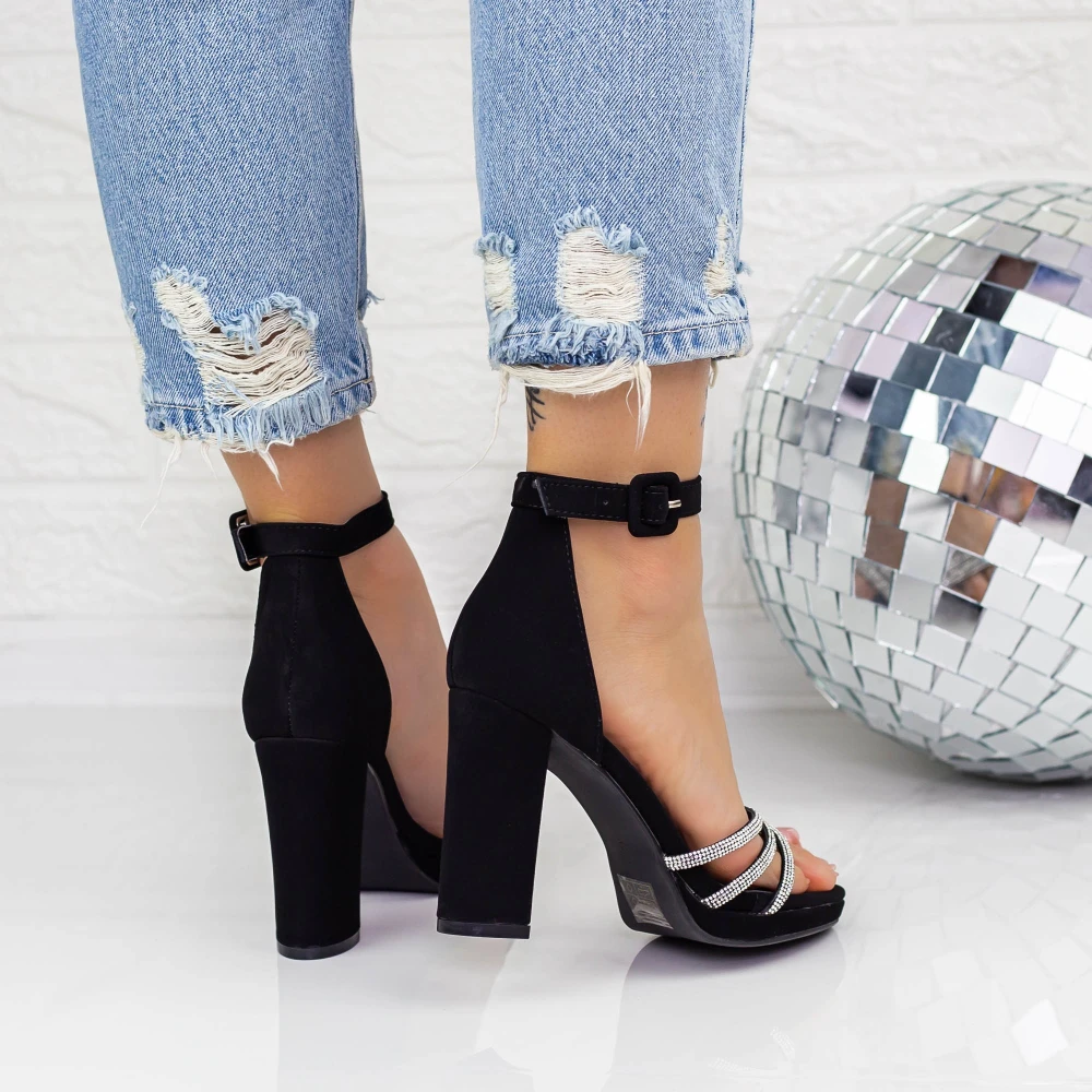 Sandale Dama cu Toc gros 2XKK29 Negru Mei