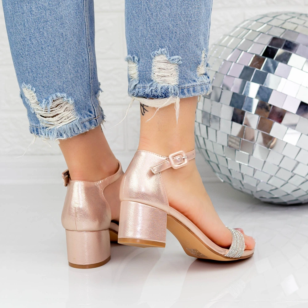 Sandale Dama cu Toc gros 2XKK34 Champagne Mei