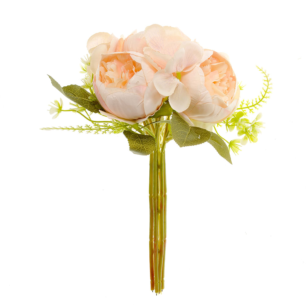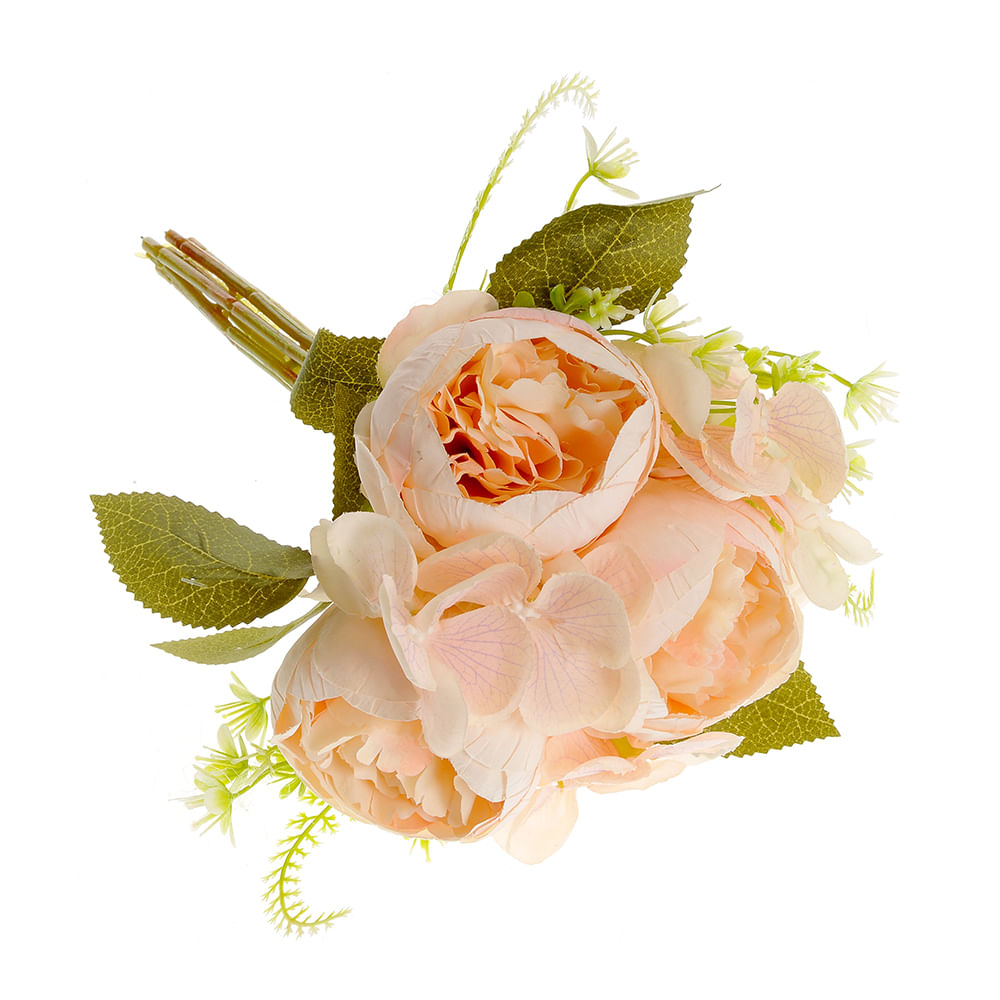 Buchet flori artificiale cu bujori si frunze verzi