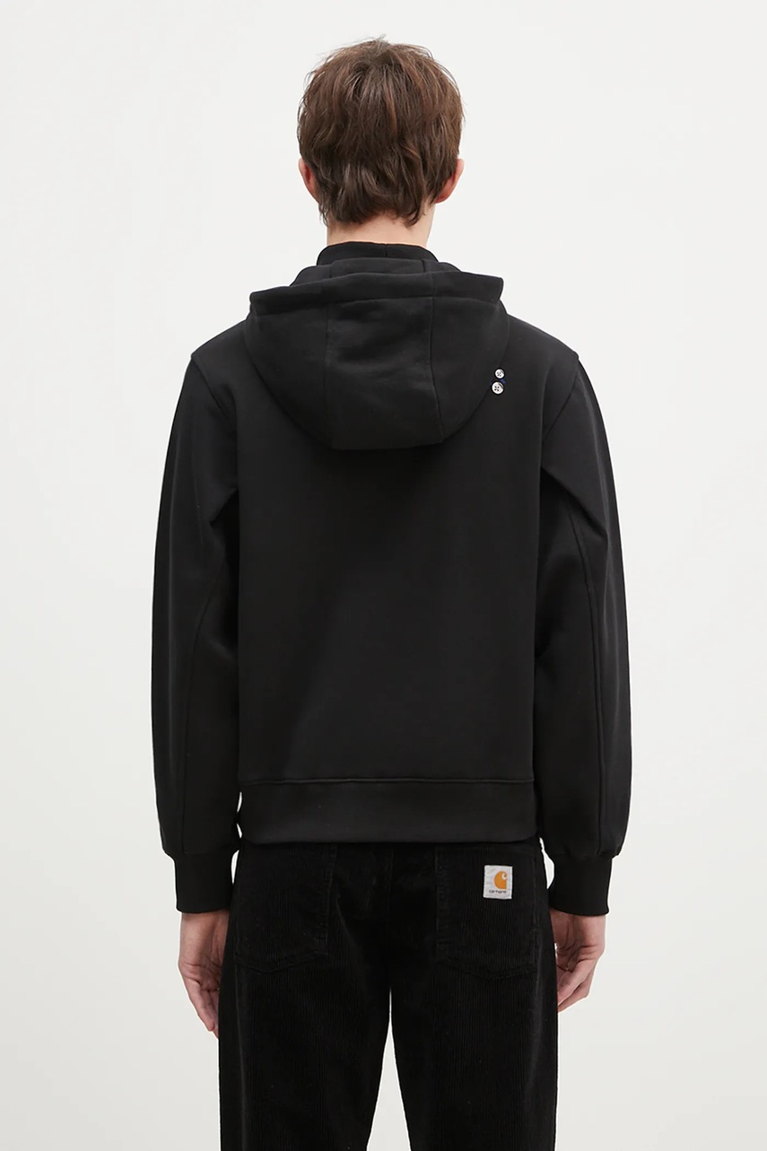 Îmbracă-te în stil și confort cu hanoracul de bumbac Ader Error, perfect pentru bărbații care apreciază atât moda, cât și funcționalitatea. Cu un imprimeu atrăgător și o nuanță elegantă de negru, acest hanorac devine rapid piesa centrală a oricărei ținute. Gluga cu șnur îți oferă căldură suplimentară în zilele răcoroase, iar gulerul ridicat îți protejează gâtul de vânturile necruțătoare. Mânecile lungi și buzunarul cangur practic îți aduc un plus de confort și comoditate, iar finisajele cu bătături asigură o rezistență sporită la intemperii. Fie că ieși la o plimbare în oraș sau te relaxezi acasă, acest hanorac elegant te va face să te simți bine și să arăți fantastic. Nu lăsa să îți scape ocazia de a adăuga acest must-have garderobei tale!